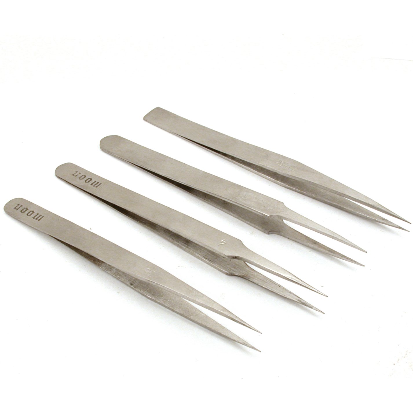 4 Stainless Steel Anti Acid & Anti Magnetic Tweezers