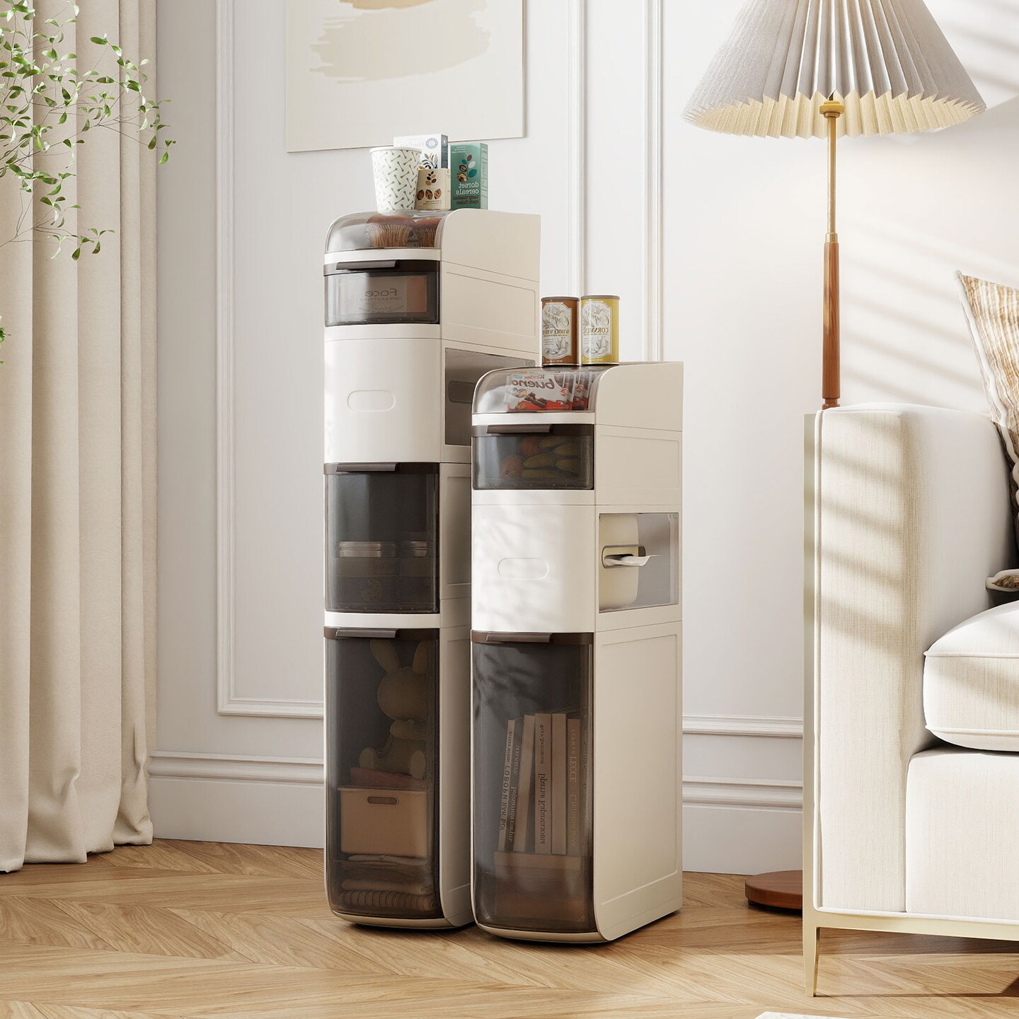 4 Tier White Plastic Slim Bathroom Storage Cabinet with Wheels and Multi-Layer Drawers