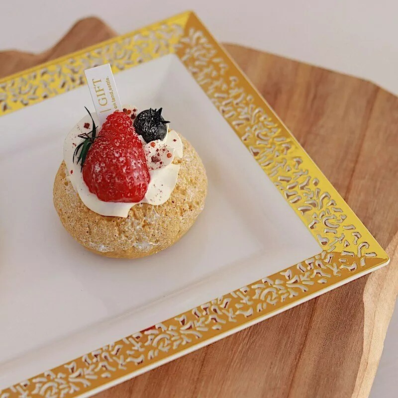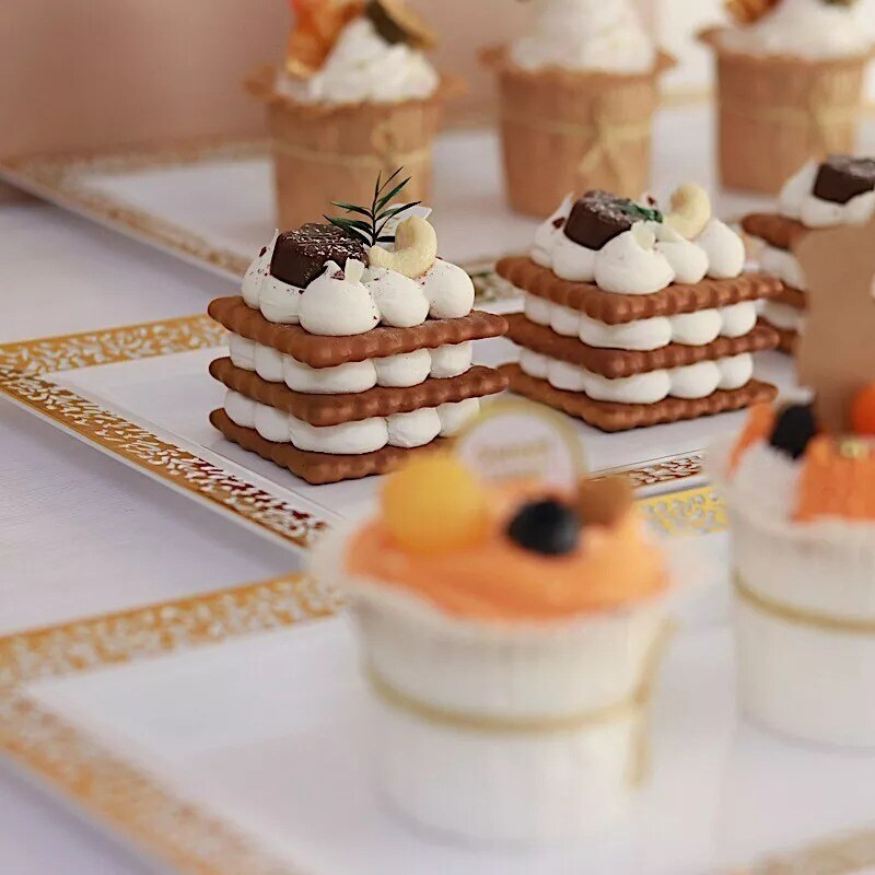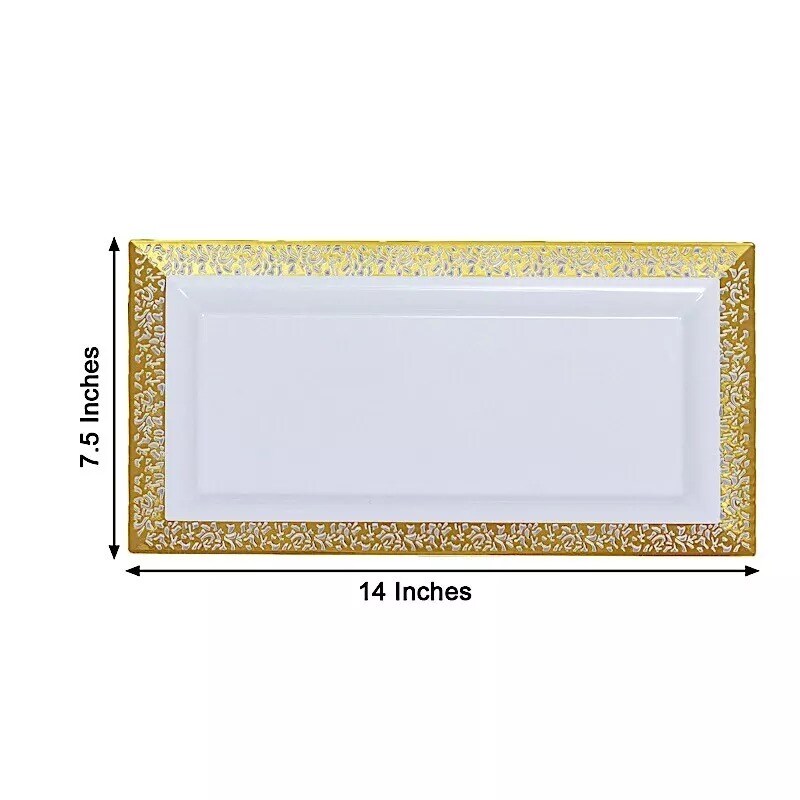 4 White 14" Rectangle Serving Trays with Metallic Gold Lace Design Party Events