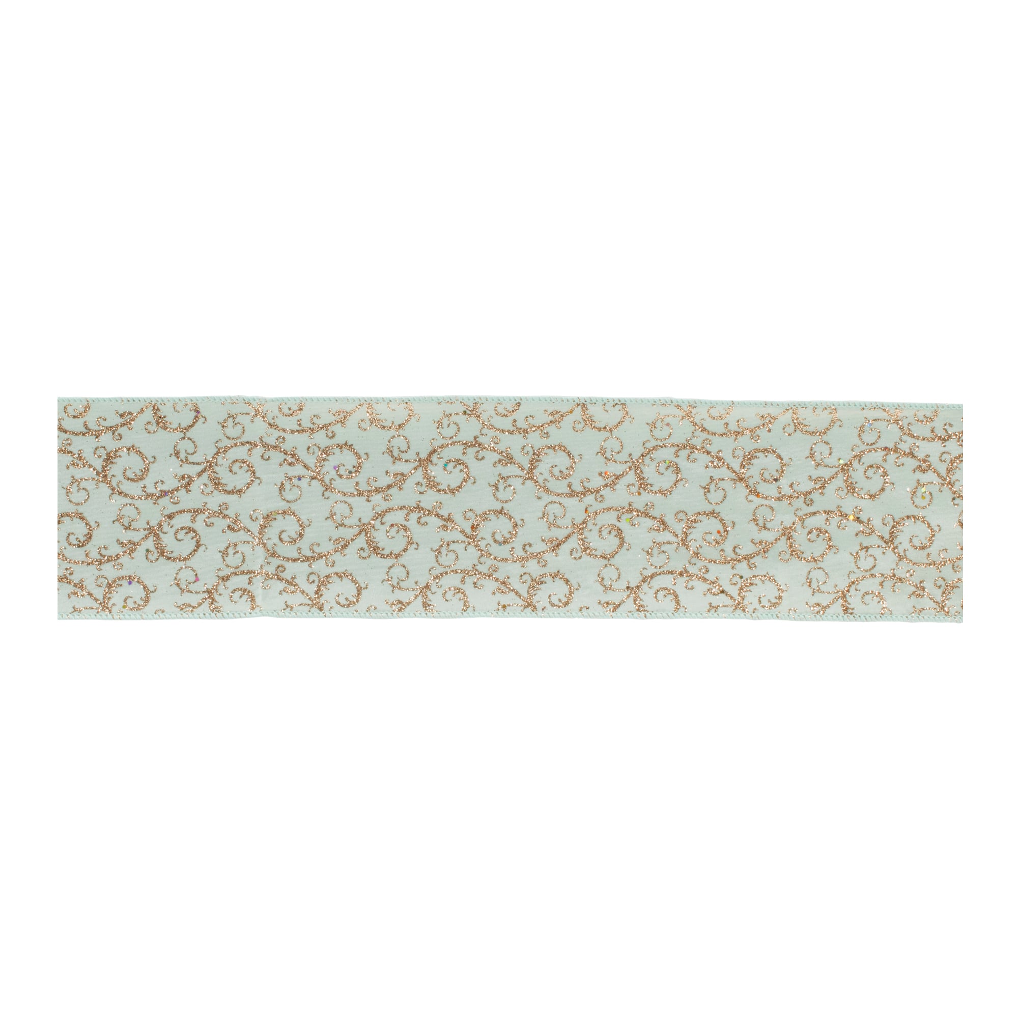 4" x 10yd. Ornate Blue & Gold Wired Glitter Vine Ribbon