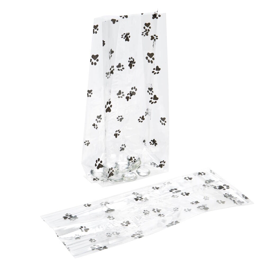 4" x 2 1/2" x 9 1/2" Paw Prints Printed Gusset Bags