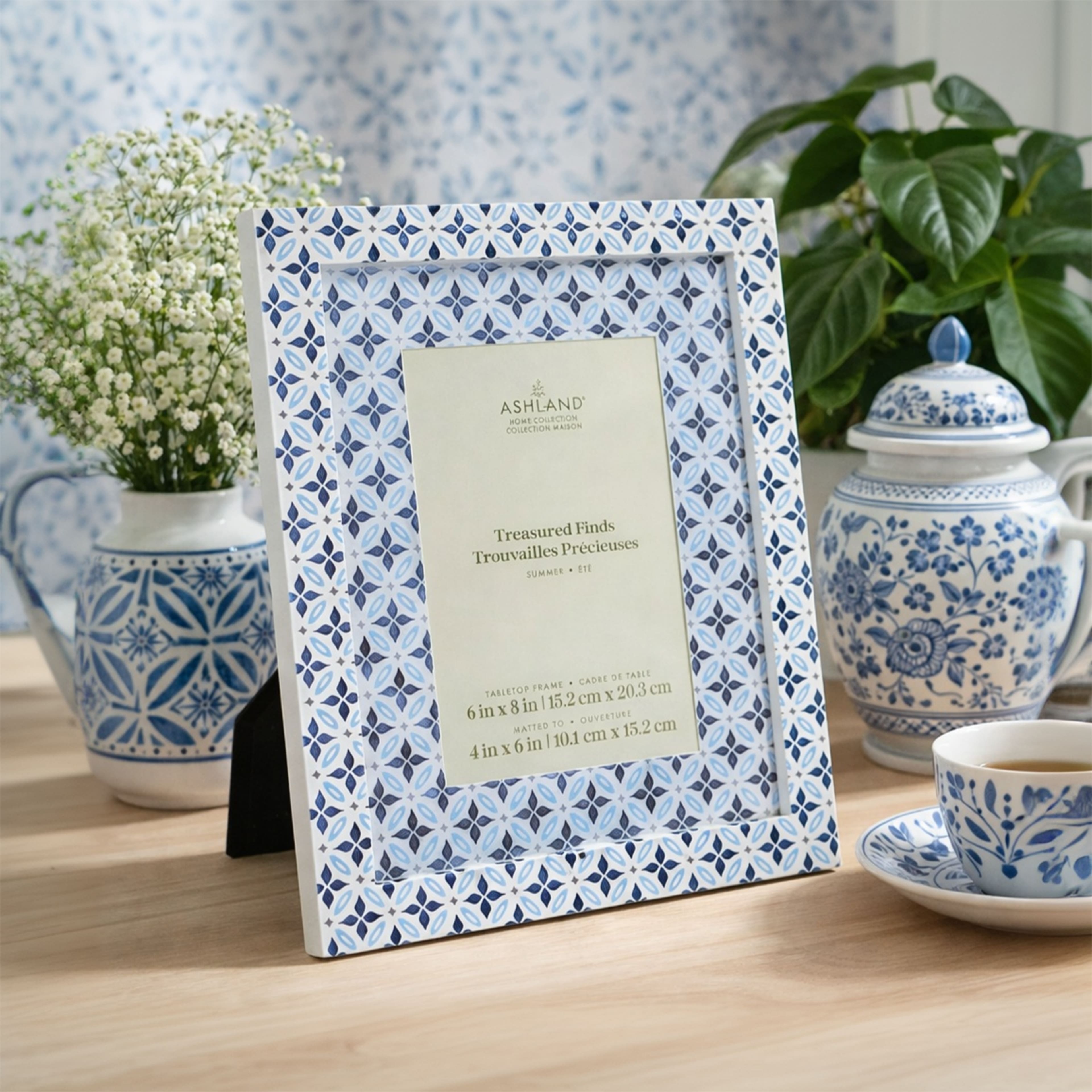4" x 6" Blue & White Tile Pattern Tabletop Frame with Mat, Treasured Finds by Ashland®