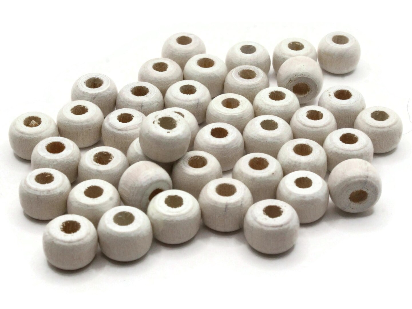 40 11mm White Wooden Barrel Large Hole Vintage Wood Beads