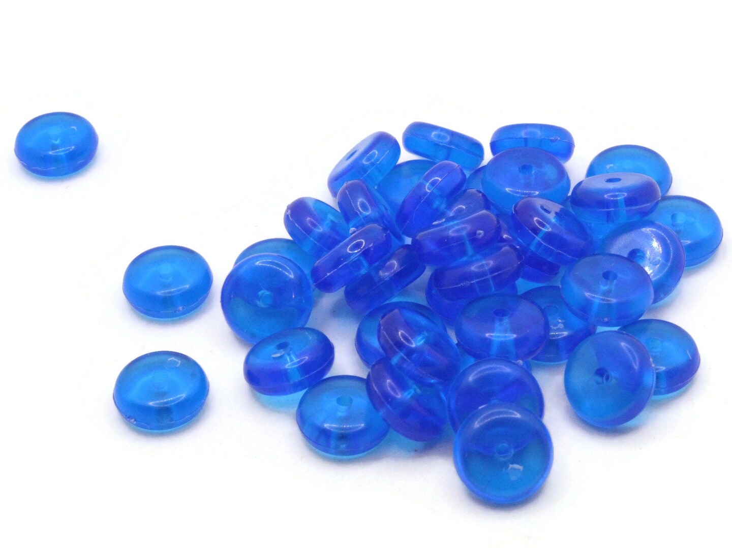 40 12mm Clear Blue Vintage Plastic Rondelle Beads
