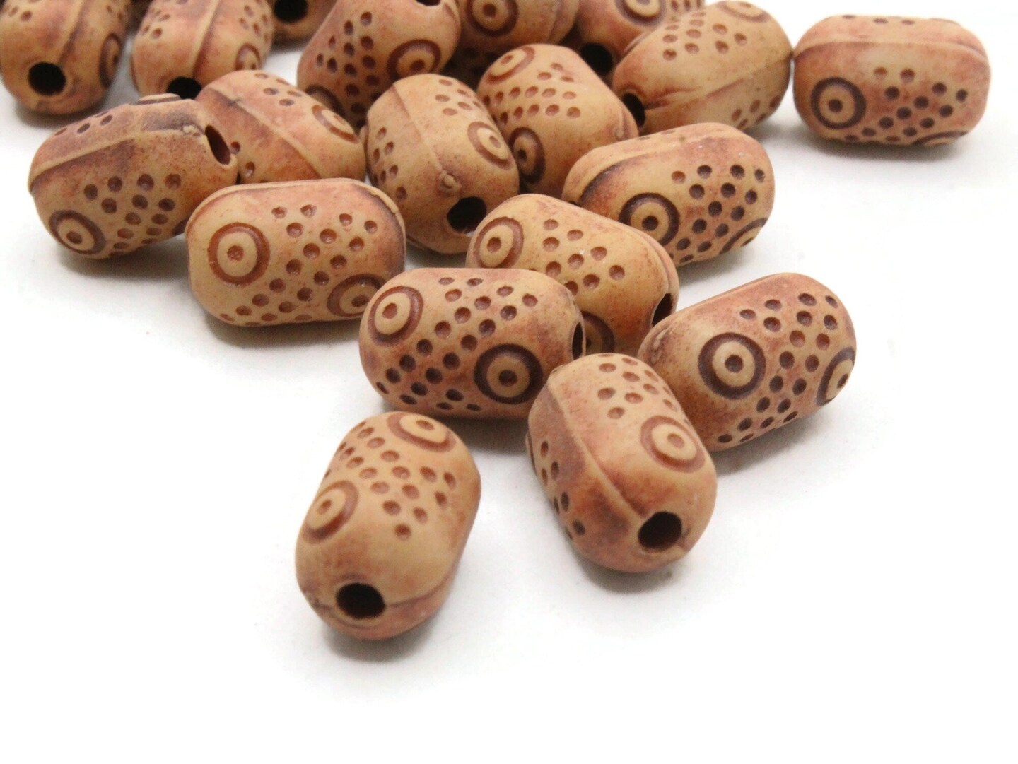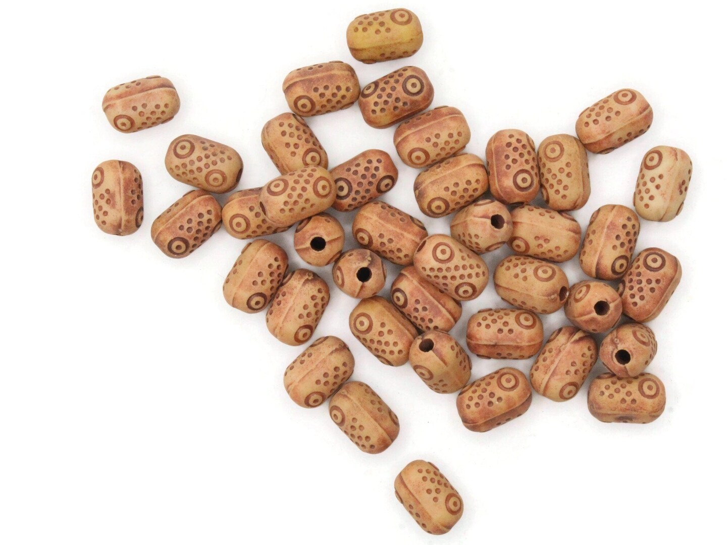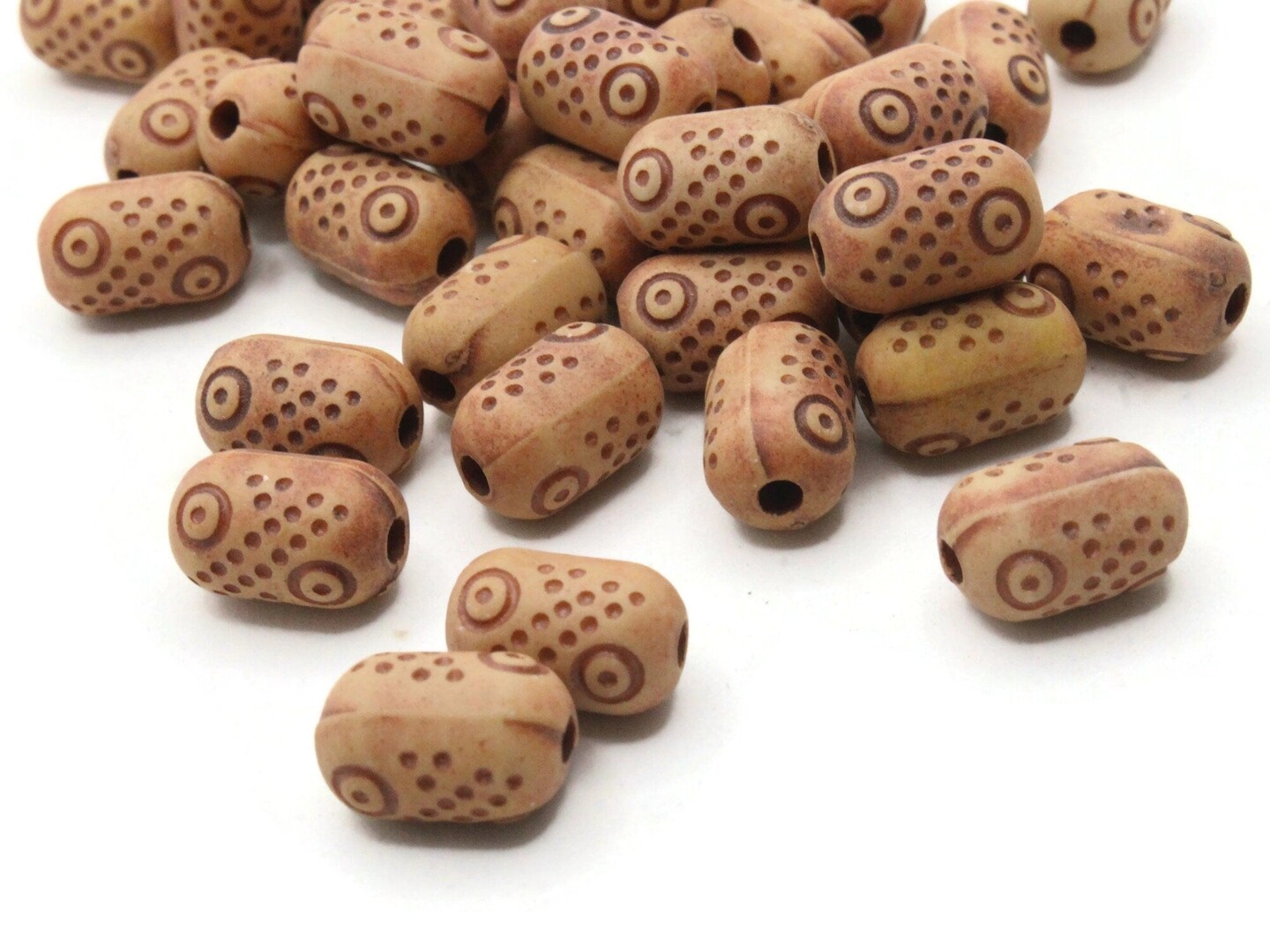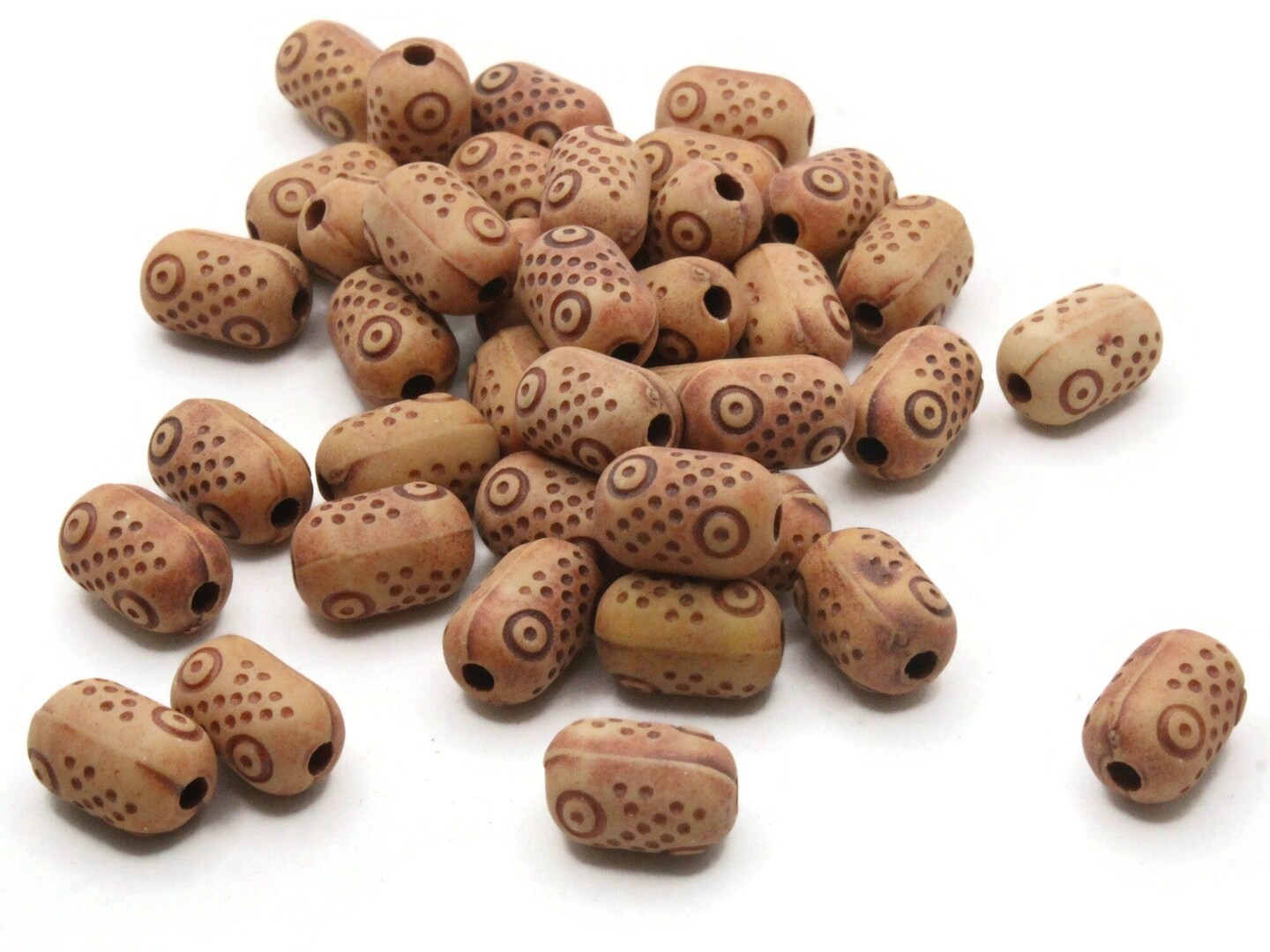40 13mm Brown Polka Dot Patterned Plastic Tube Beads