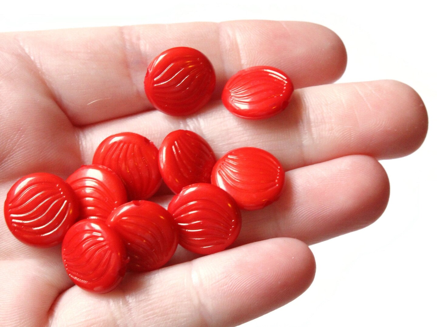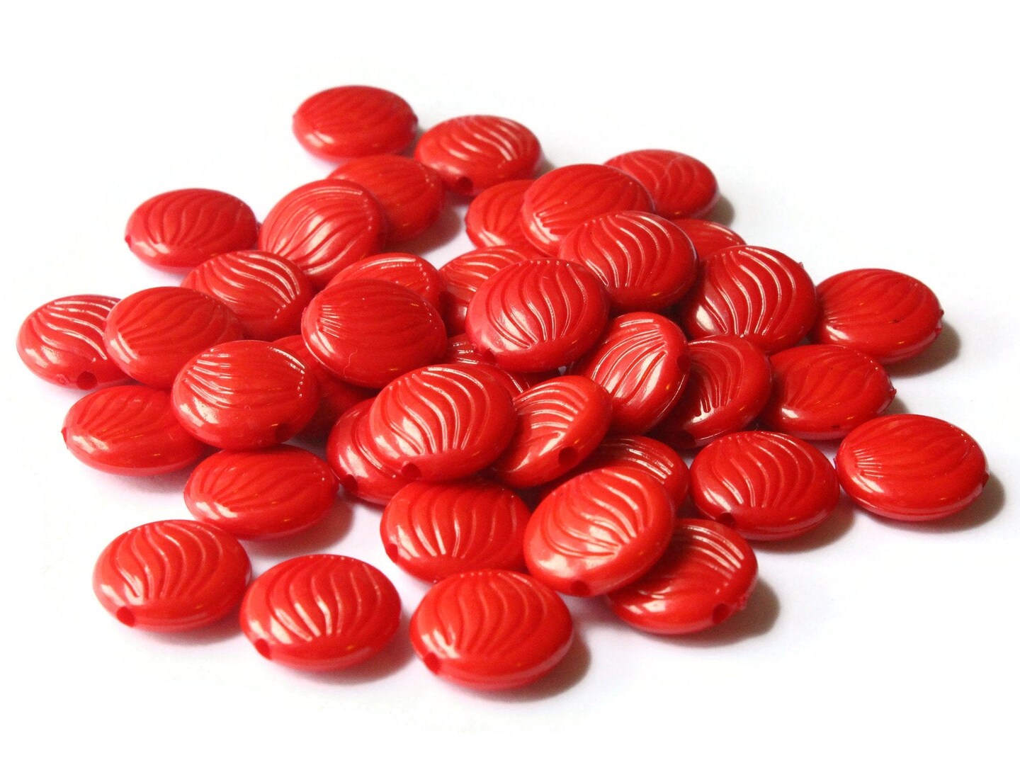 40 14mm Red Patterned Acrylic Flat Round Beads Plastic Coin Beads to String