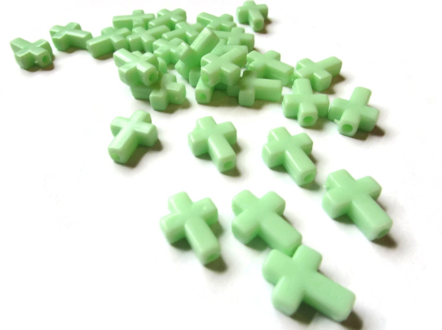 40 17mm Mint Green Crosses Christian Beads Plastic Cross Beads