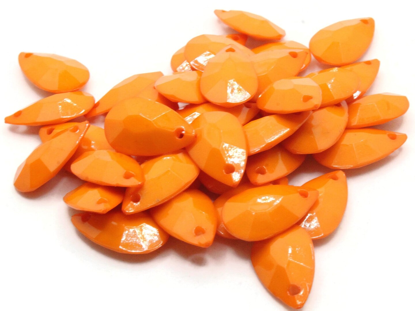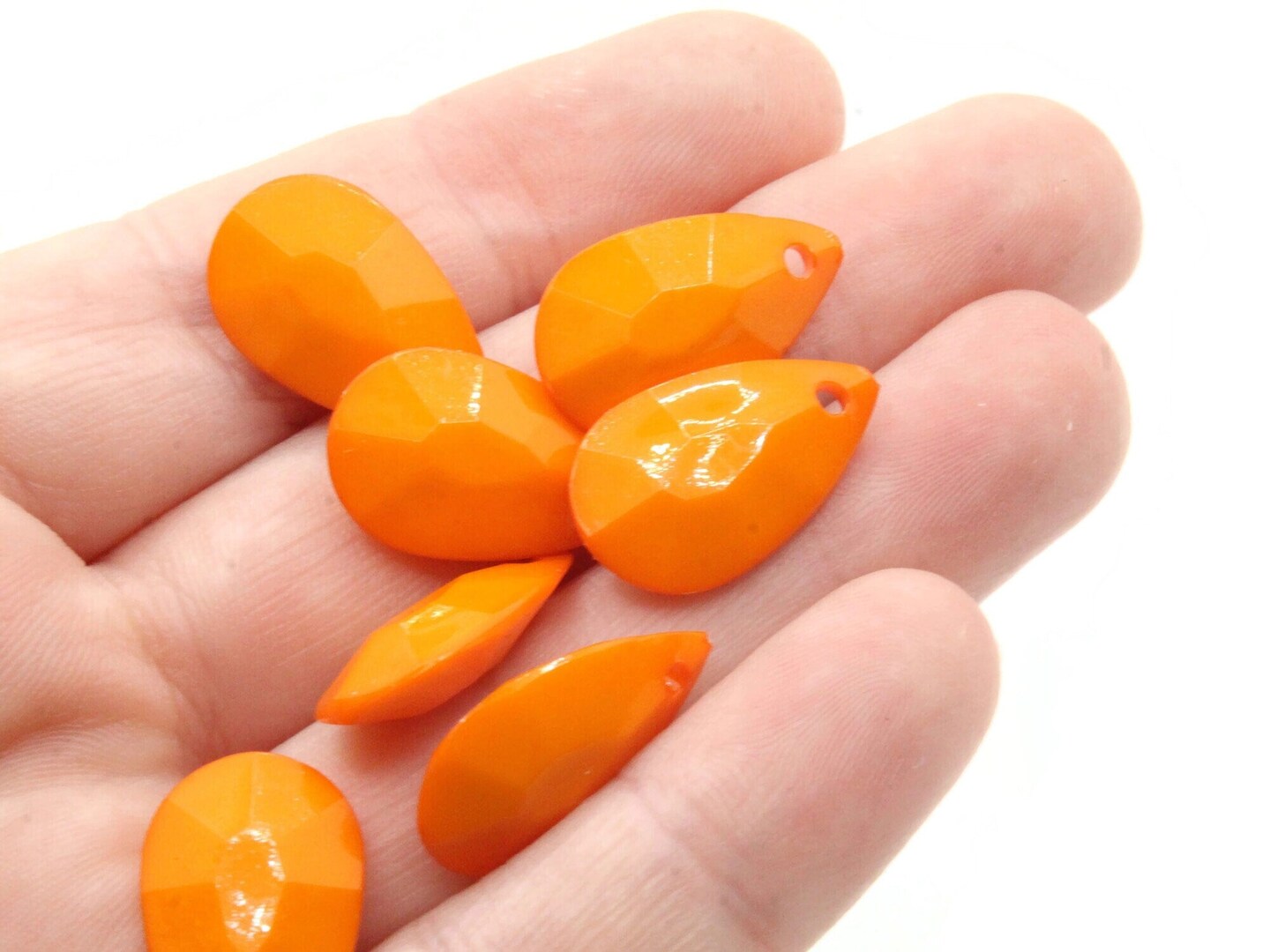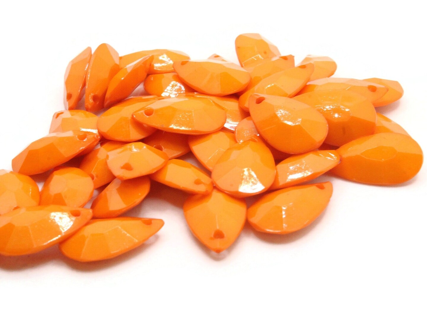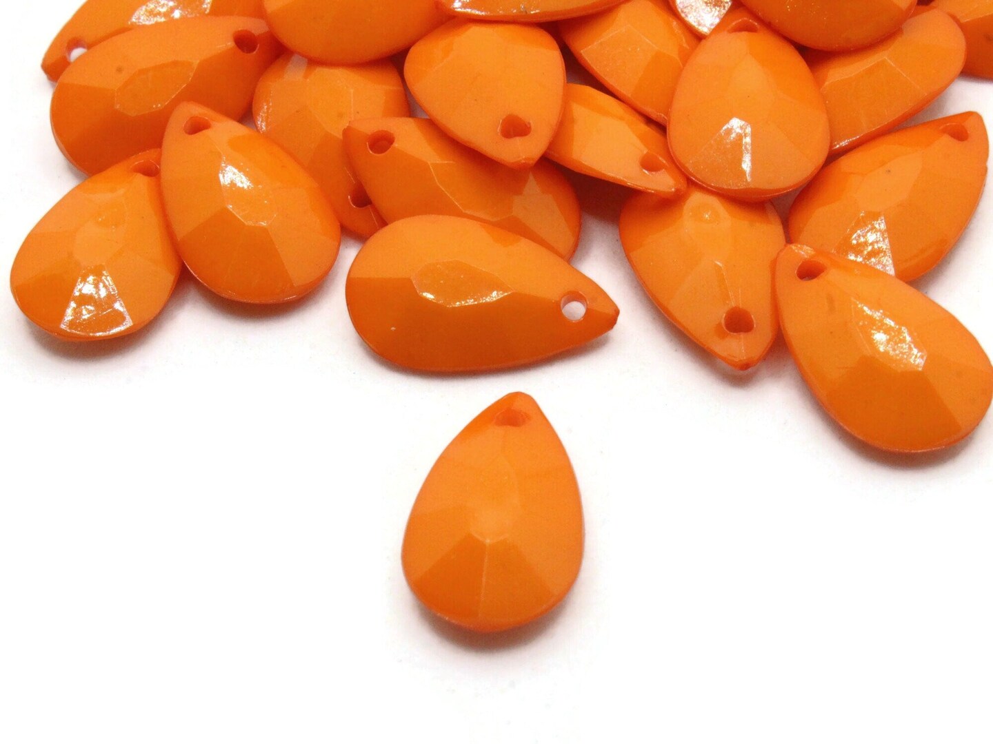 40 20mm Orange Briolette Faceted Teardrop Plastic Beads