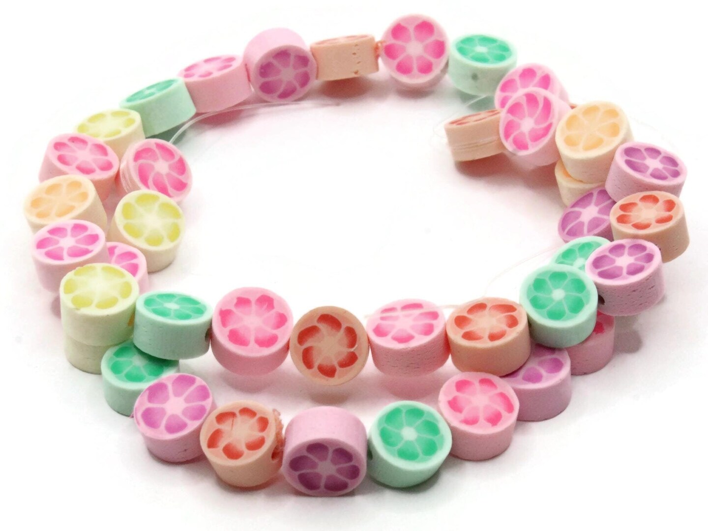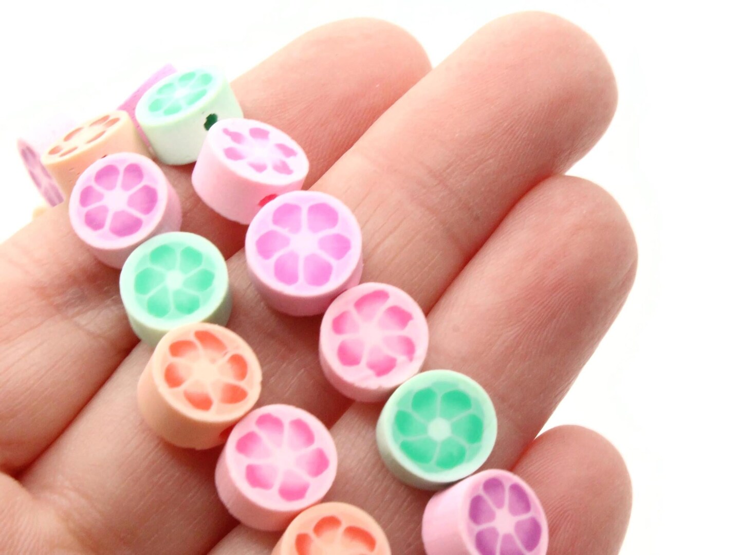 40 9mm Polymer Clay Mixed Color Flower Small Coin Beads