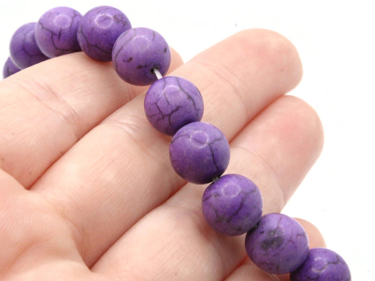 40 9mm to 10mm Round Purple Dyed Howlite Gemstone Beads