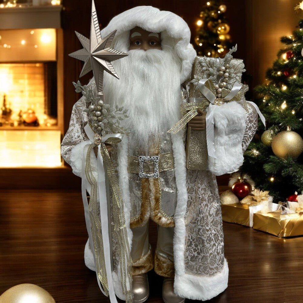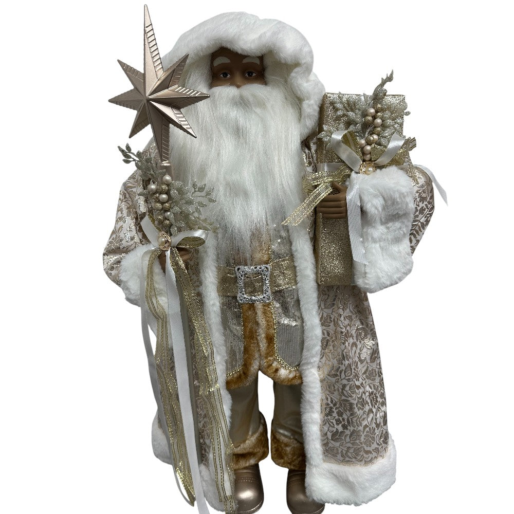40” African American Santa Claus Figure Ivory & Gold Christmas Decoration