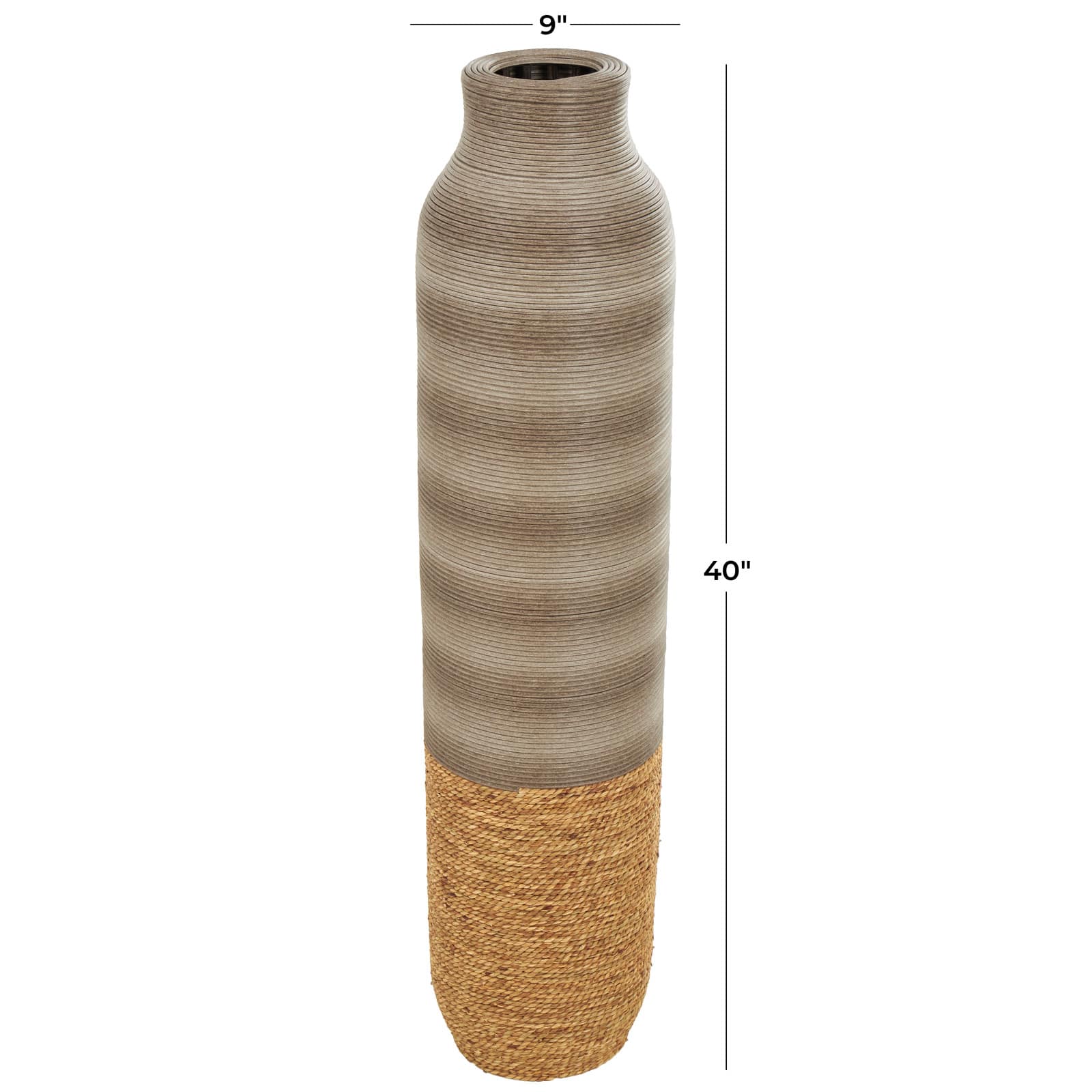 40" Brown Seagrass Handmade Ribbed Vase with Coiled Seagrass Base