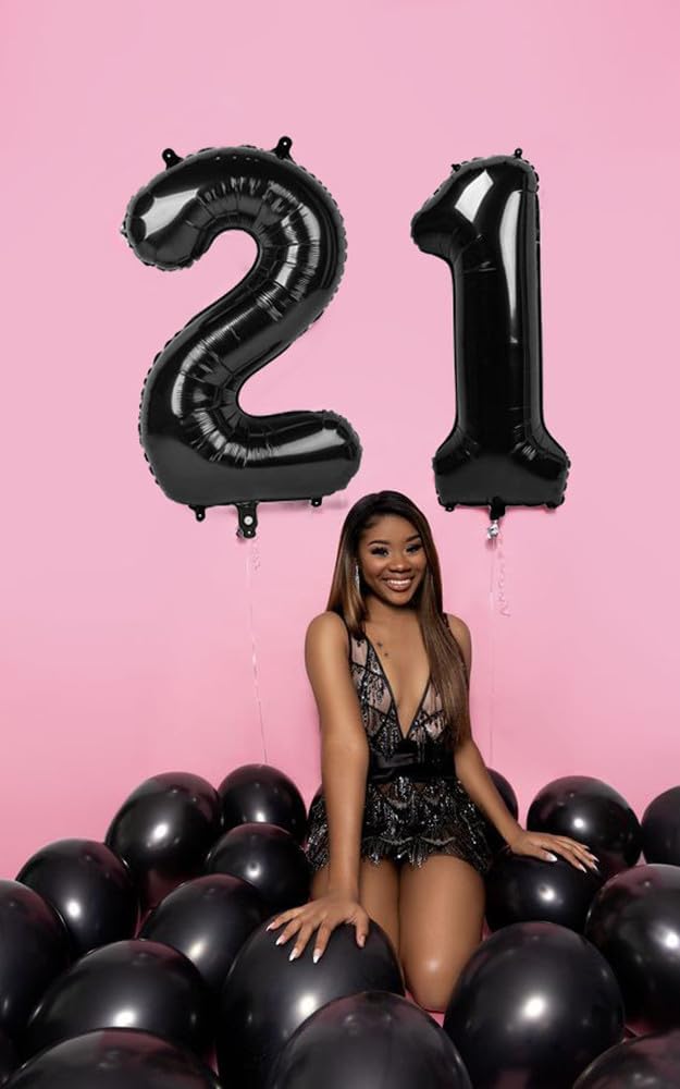 40 Inch 21 Number Balloon, Black Birthday Decorations for Men Women (Black)