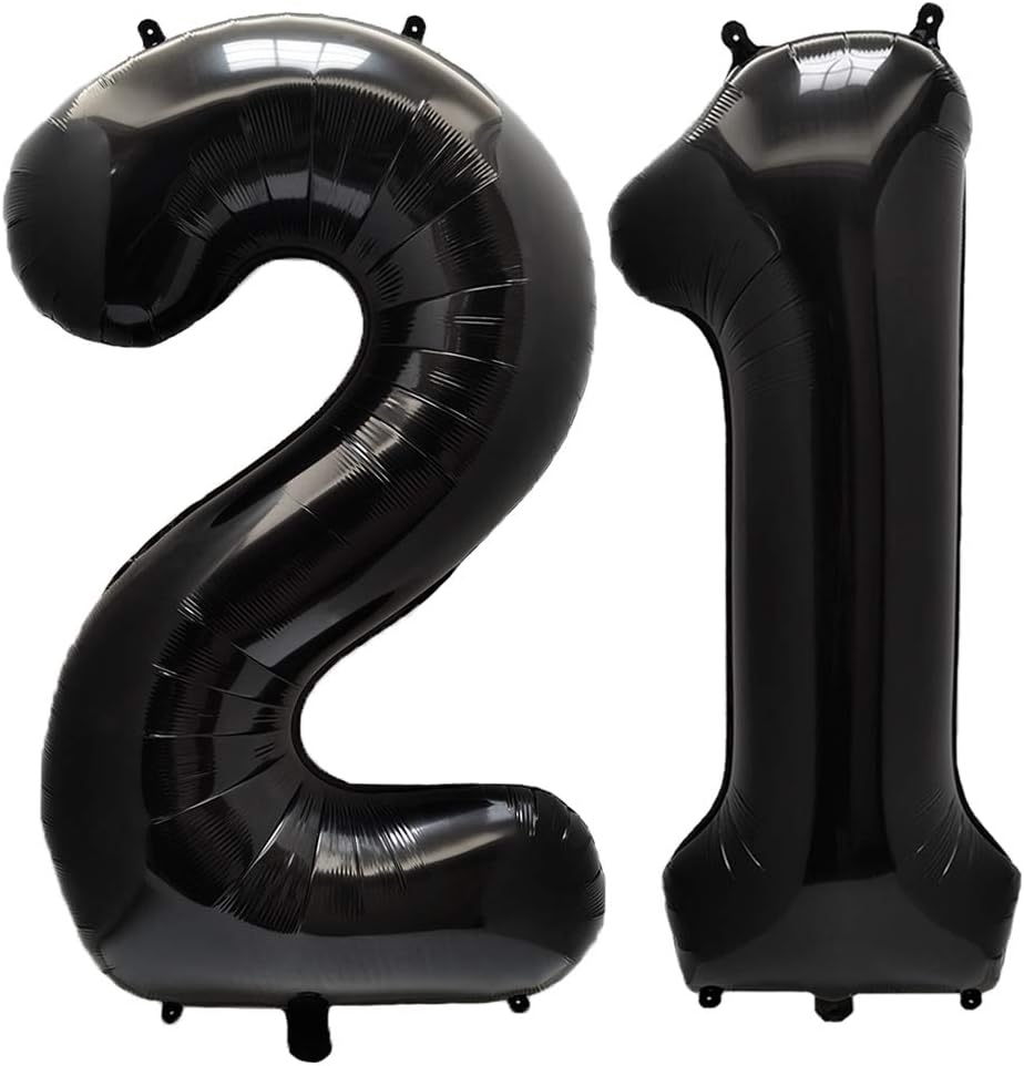 40 Inch Jumbo Black Foil Mylar Number Balloons for Men Women 21st Birthday Party Decorations (Black 21)