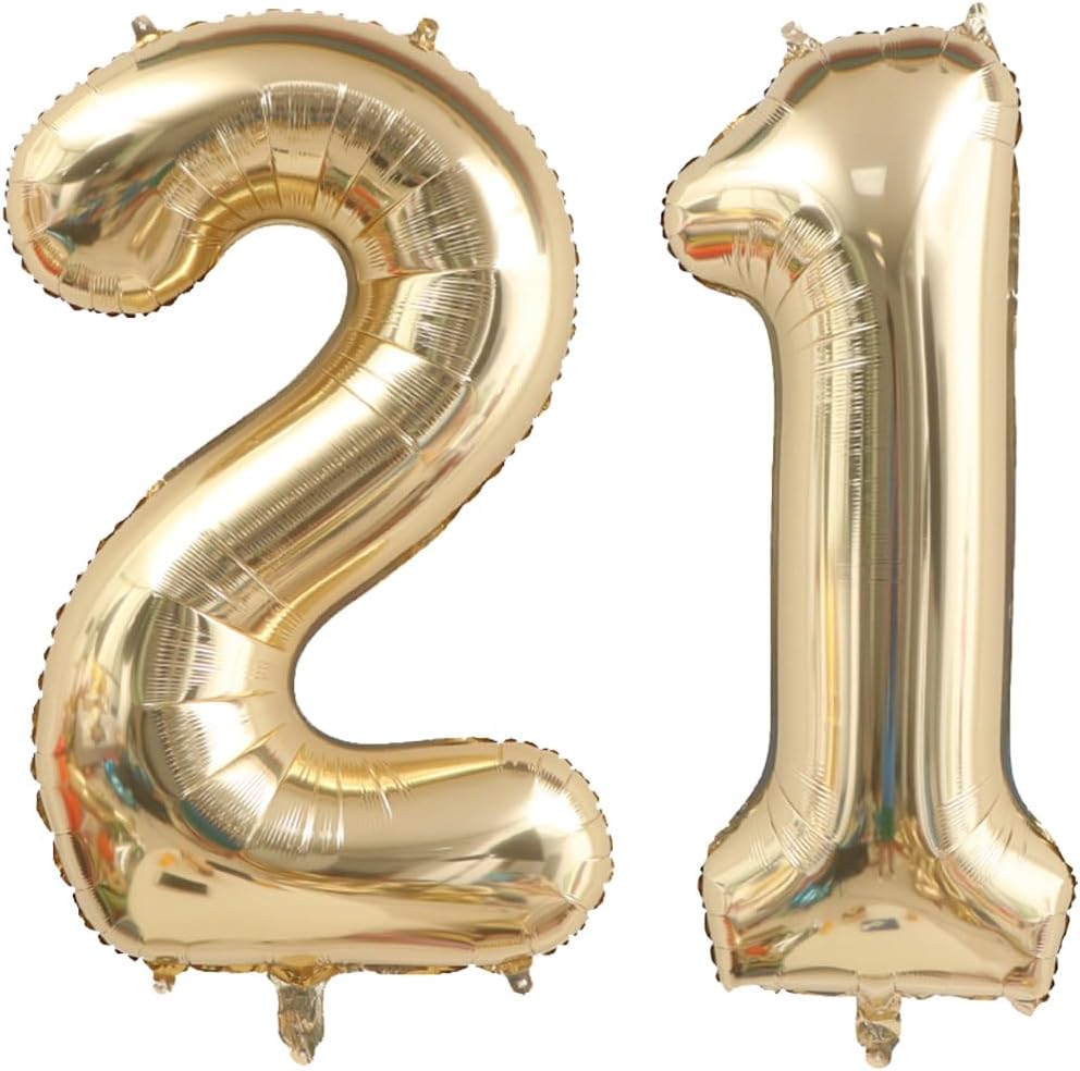 40 Inch Light Gold 21 Number Balloons White Gold Giant 12 Foil Mylar Helium Large (Light Gold 21)