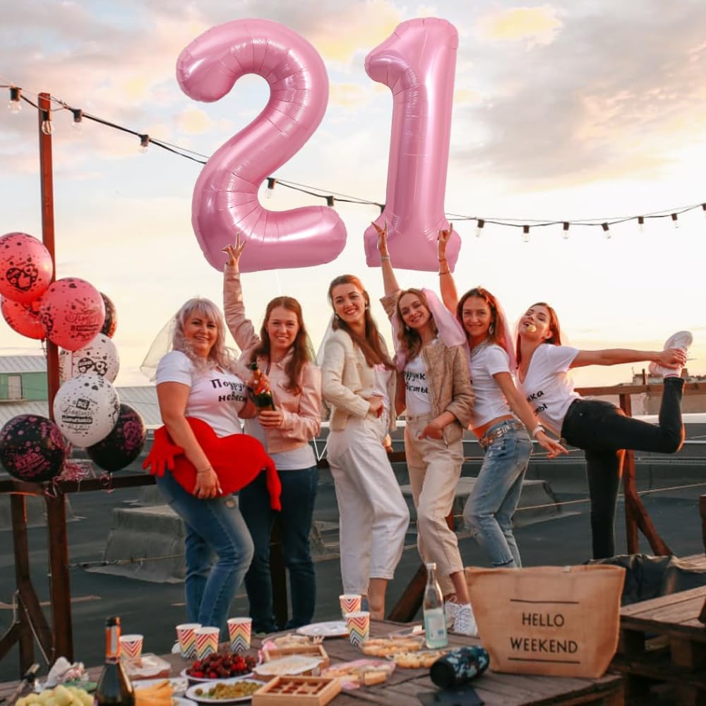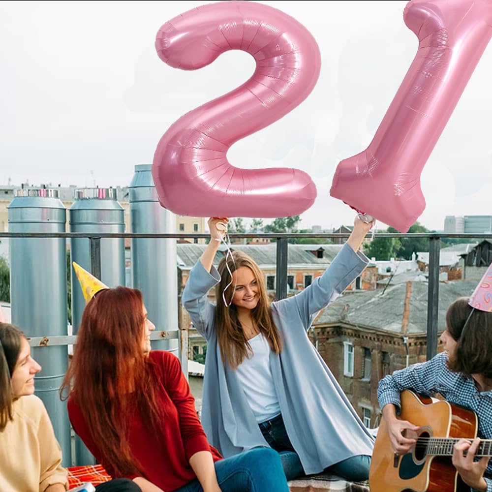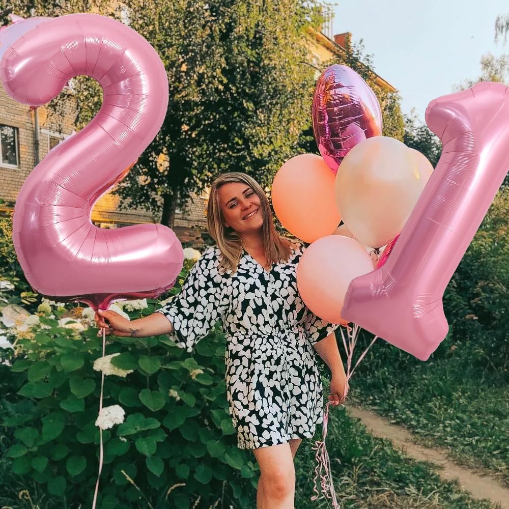 40 Inch Light Pink Large Numbers Balloons Number 21 Helium Balloons Pink Foil Mylar,21 Pastel Balloons(Number 21)