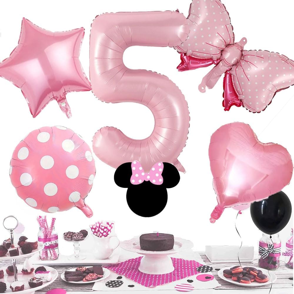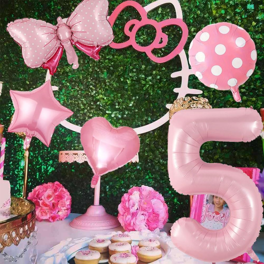 40 Inch Number 5 Balloon with Bow – Pink Jumbo Happy Birthday Balloon for Girls’ Birthday Party Decorations & Supplies