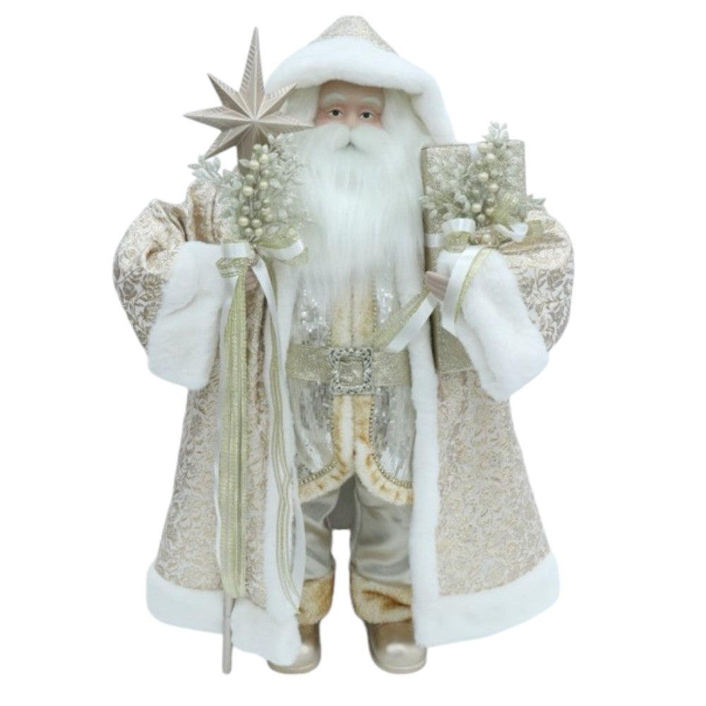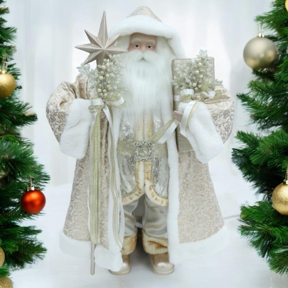 40” Ivory & Gold Santa Claus Figure Christmas Decoration - Elegant Holiday Decor