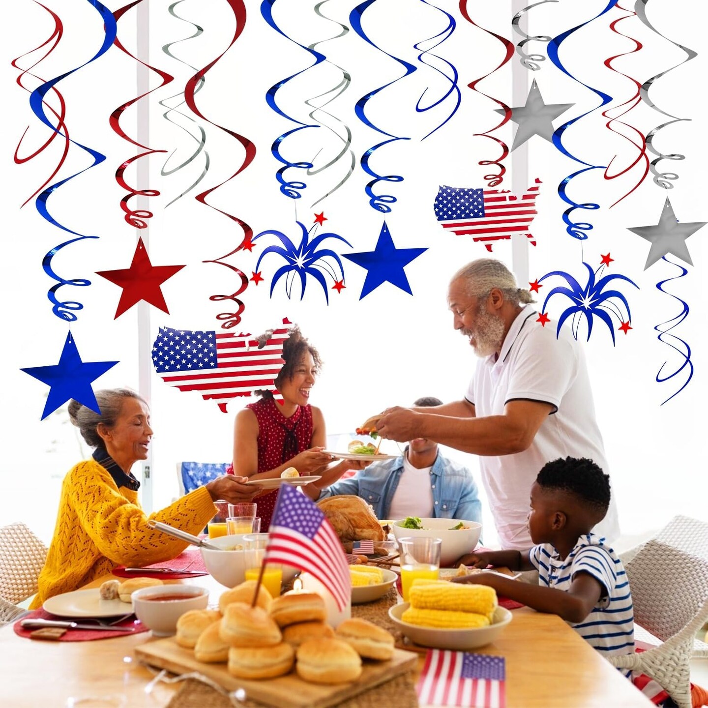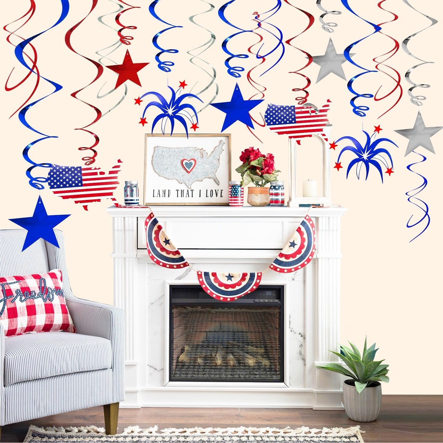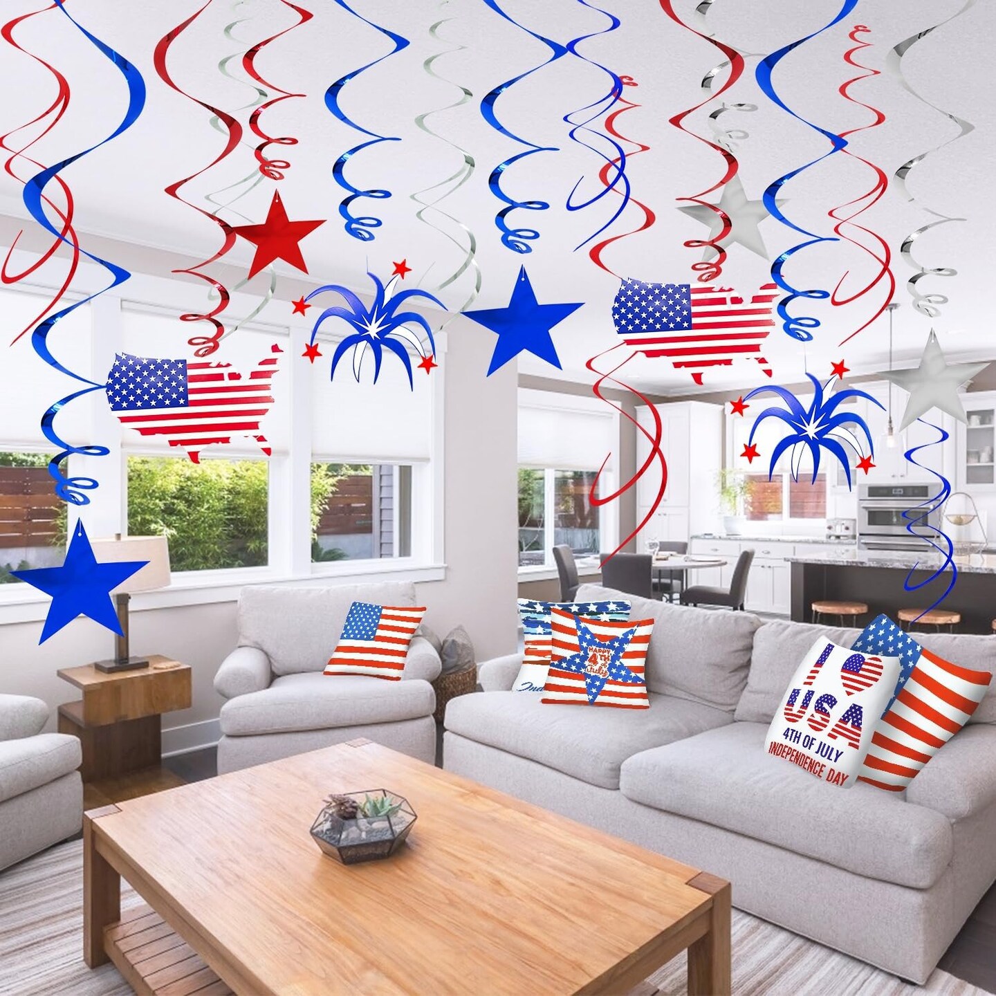 40 Pcs 4th of July Decorations Hanging Swirls with Americans Flag/Stars