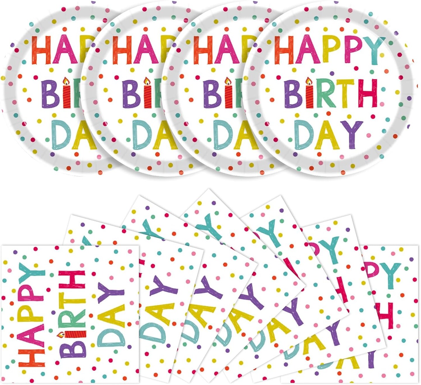 40 Pcs Birthday Plates and Napkins Party Supplies, Disposable Happy Birthday Plates and Napkins Dots Design Tableware Set for Birthday Party Decorations Serves 20