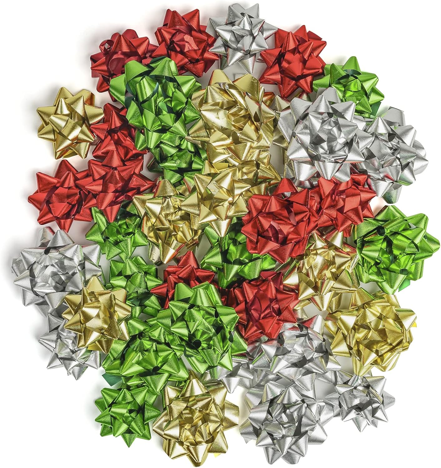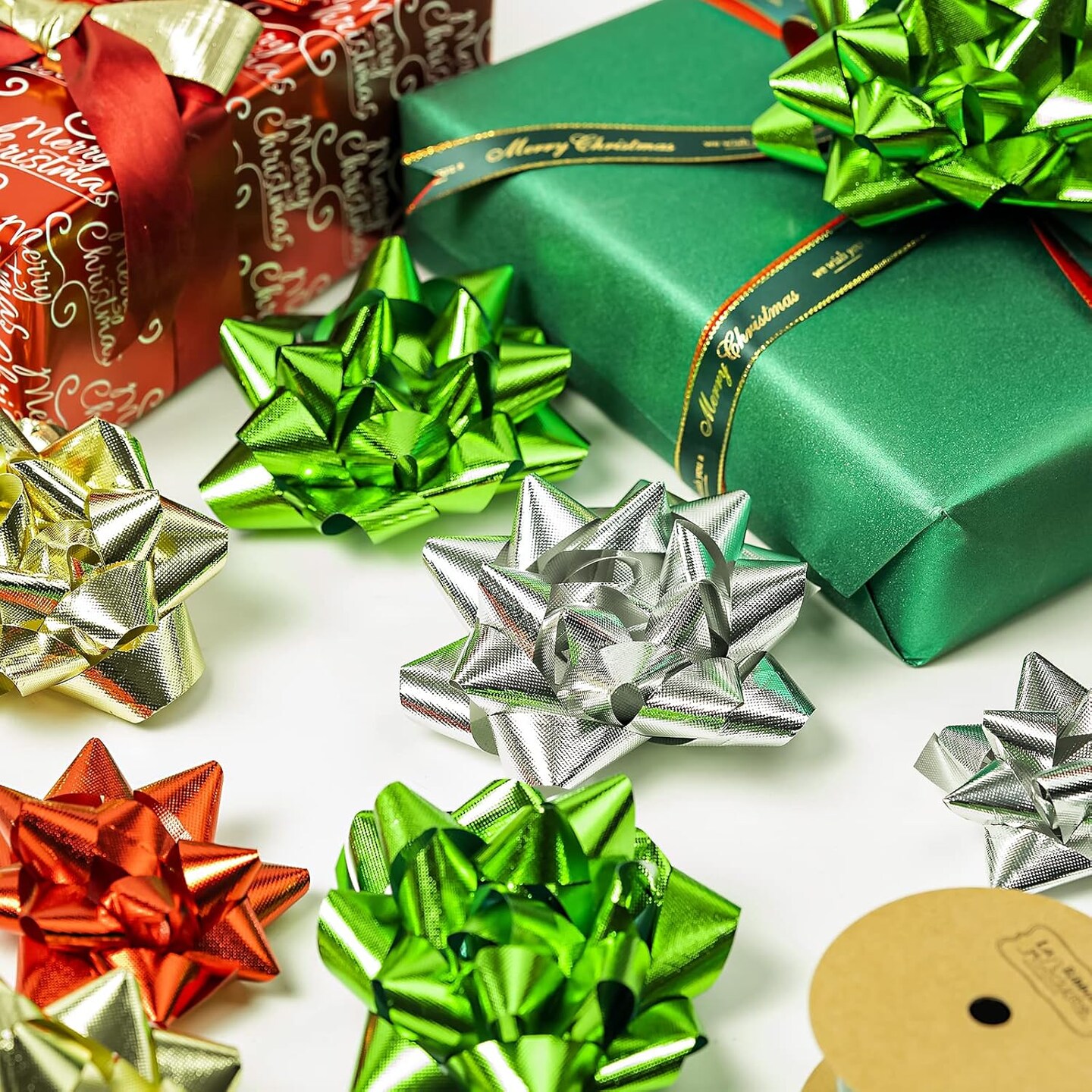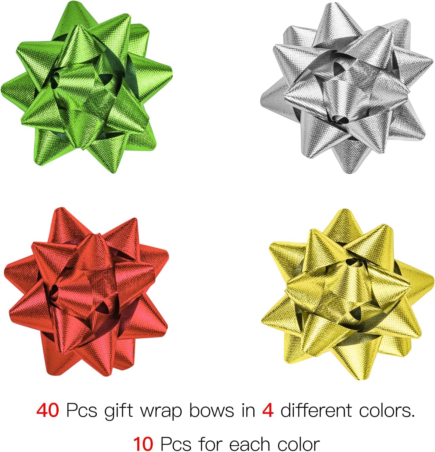 40 Pcs Christmas Gift Bow Assortment - (2 Sizes: 3.5 Inches + 4.5 Inches) Red, Green, Gold, Silver Bow for Christmas, Birthday, Wedding, Baby Shower, Bridal Showers