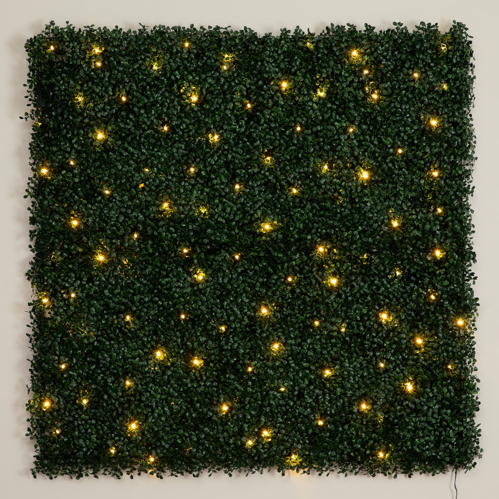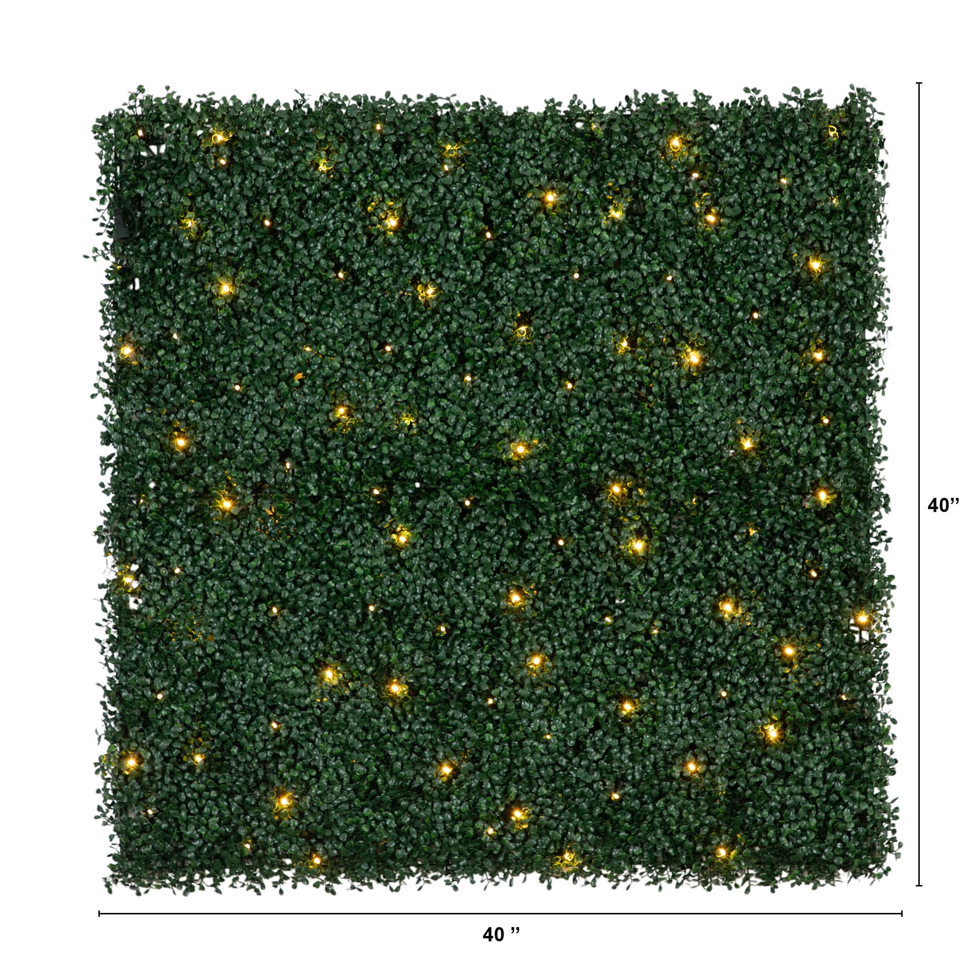 40" Pre-Lit Warm White LED Boxwood Artificial Living Wall Panel
