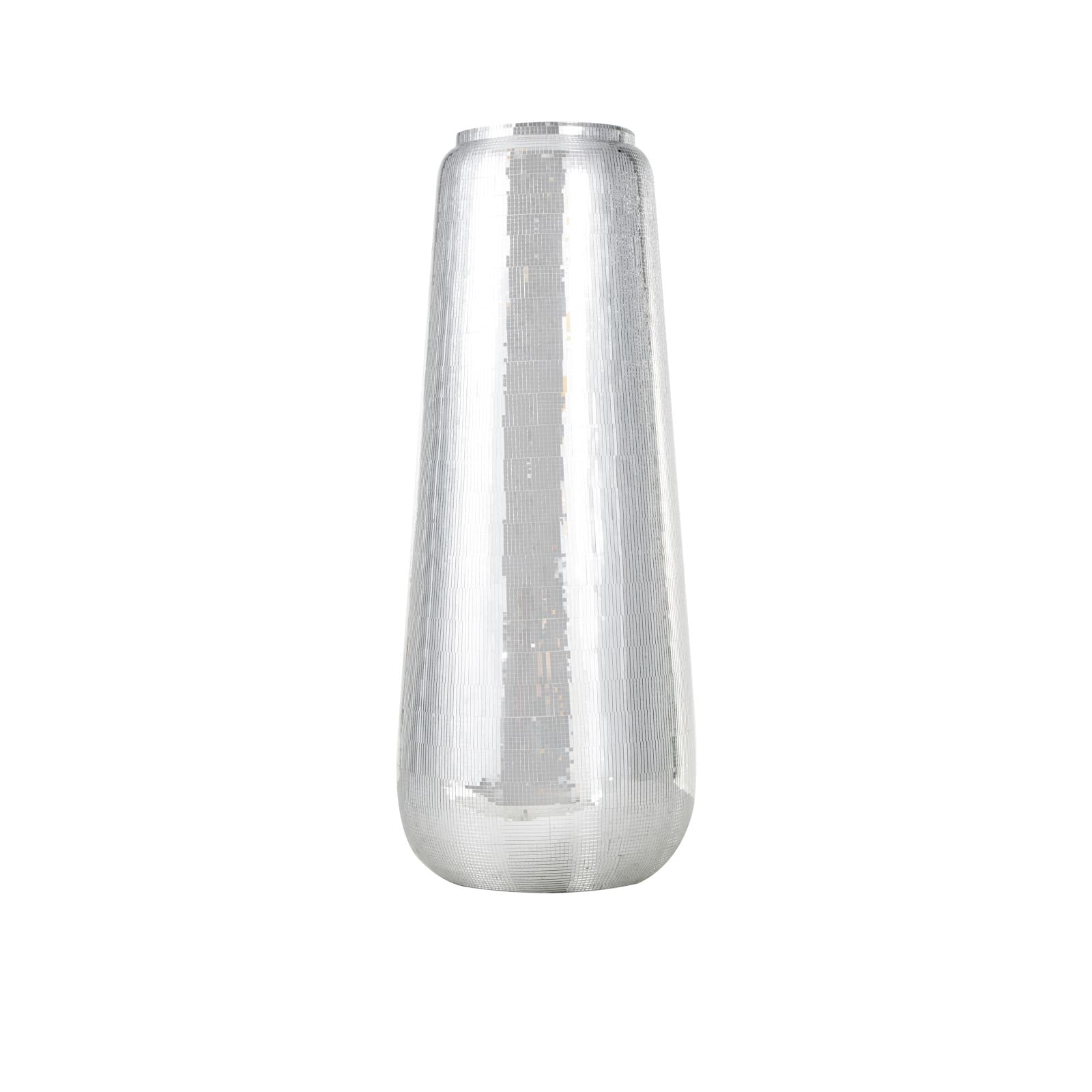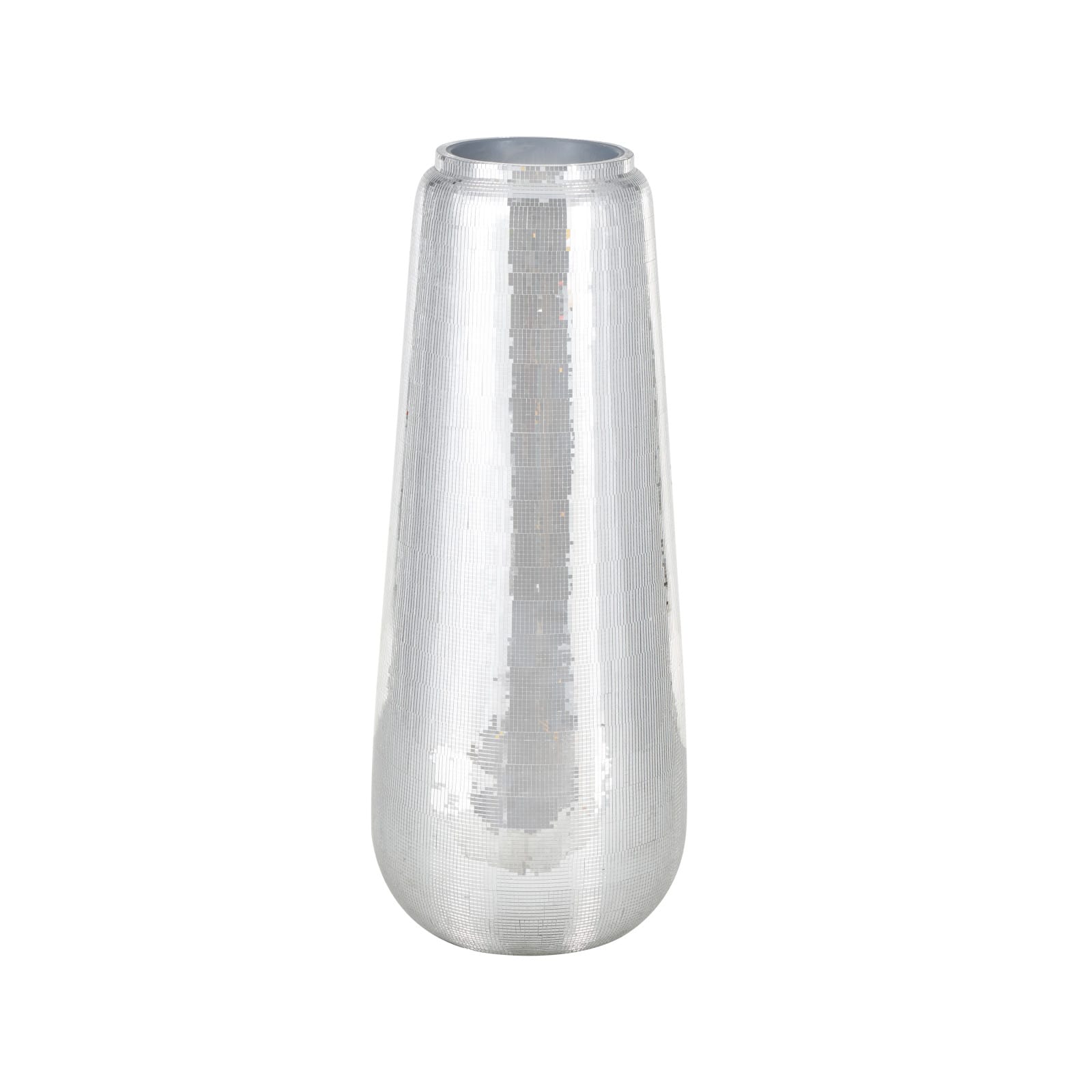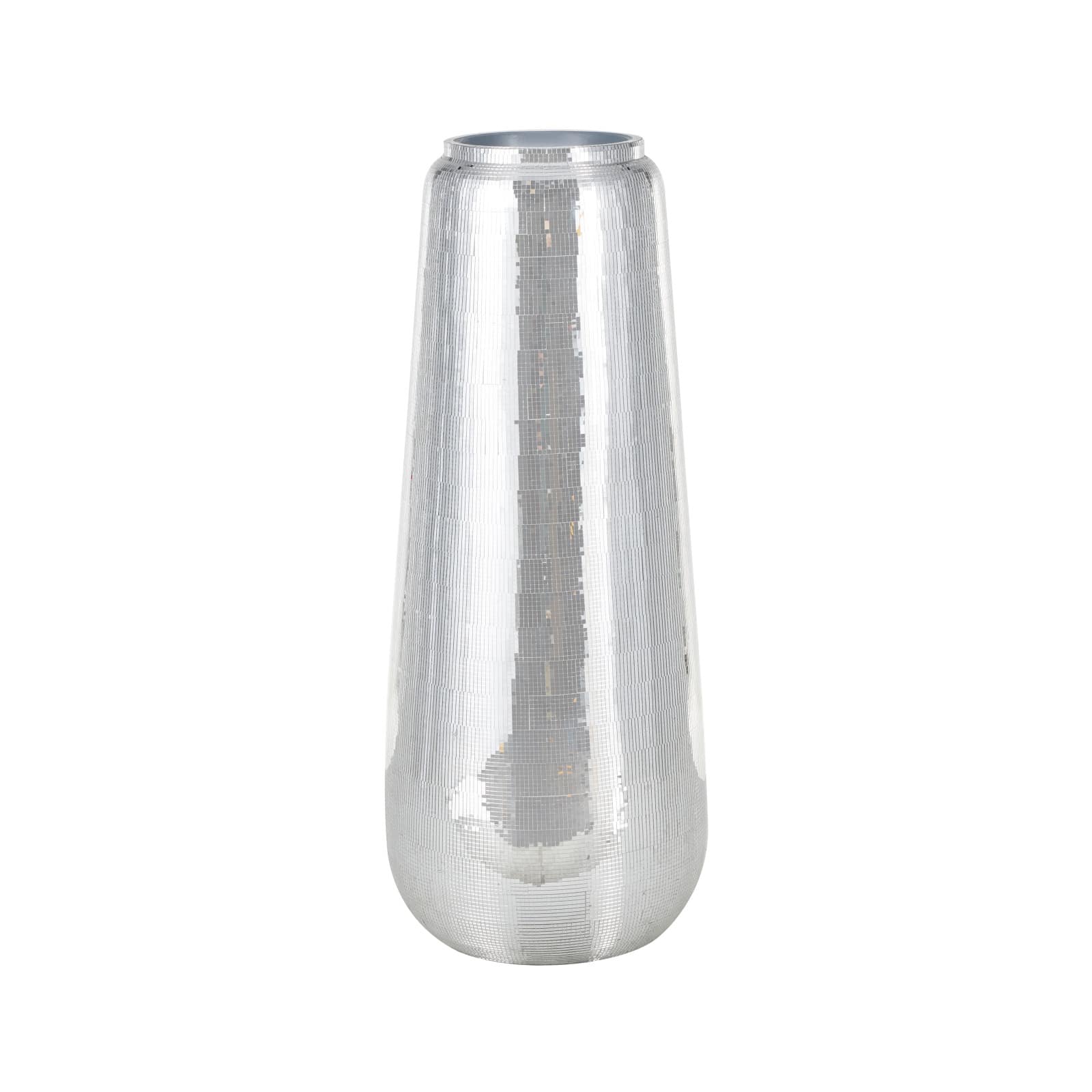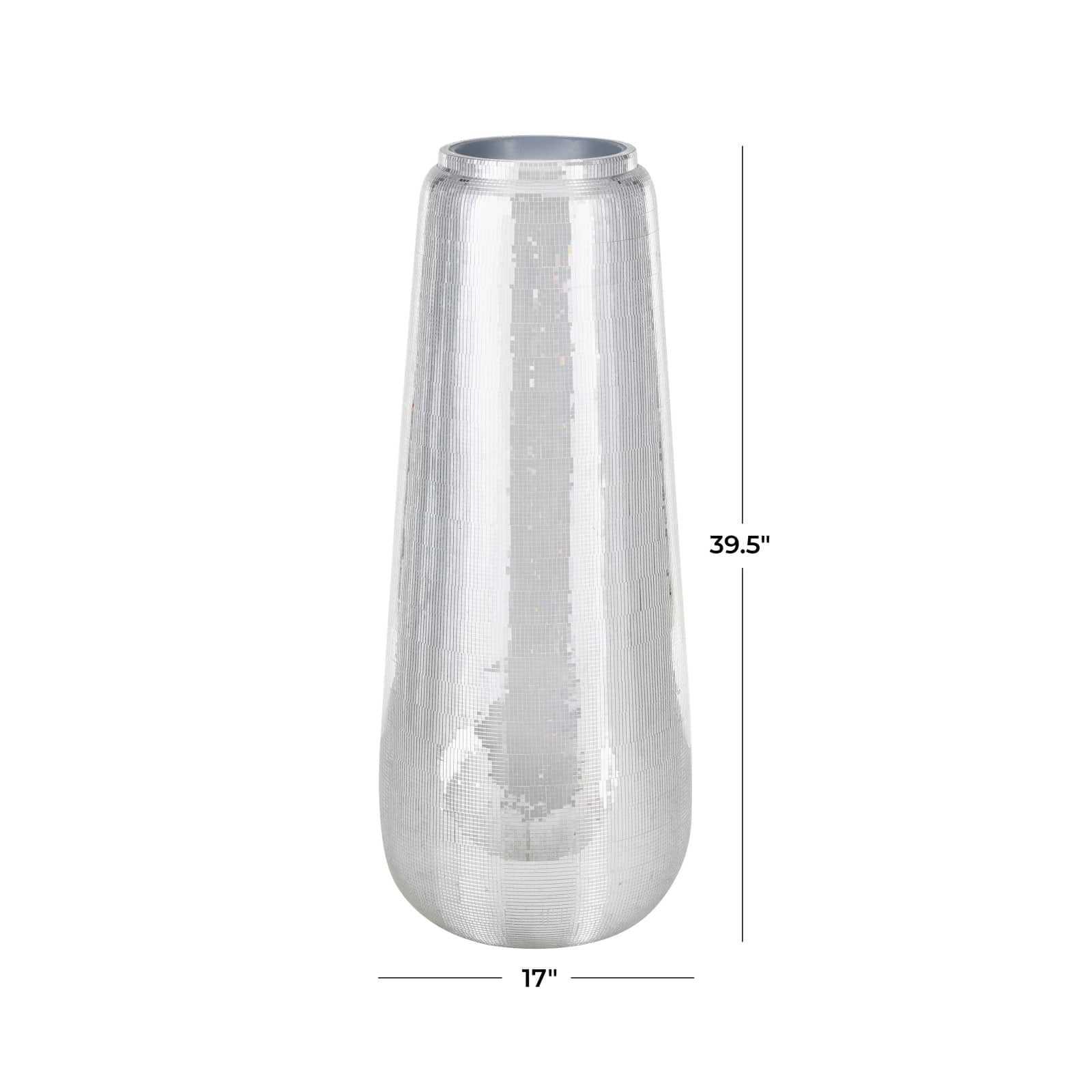 40" Silver Fiberglass Mosaic Floor Vase with Blue Interior,