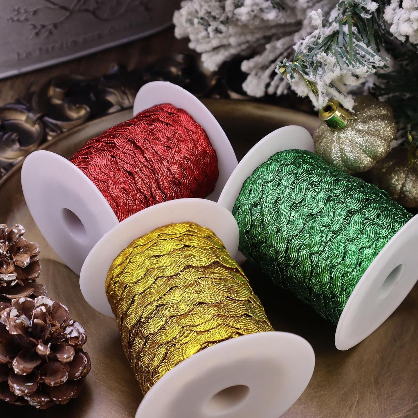 40 Yards Rick Rack Wave Bending Fringe Trim Christmas Red Glitter Lace Ribbon Metallic RIC Rac Trim for Sewing Clothes Gift Wrapping Home Party Decoration