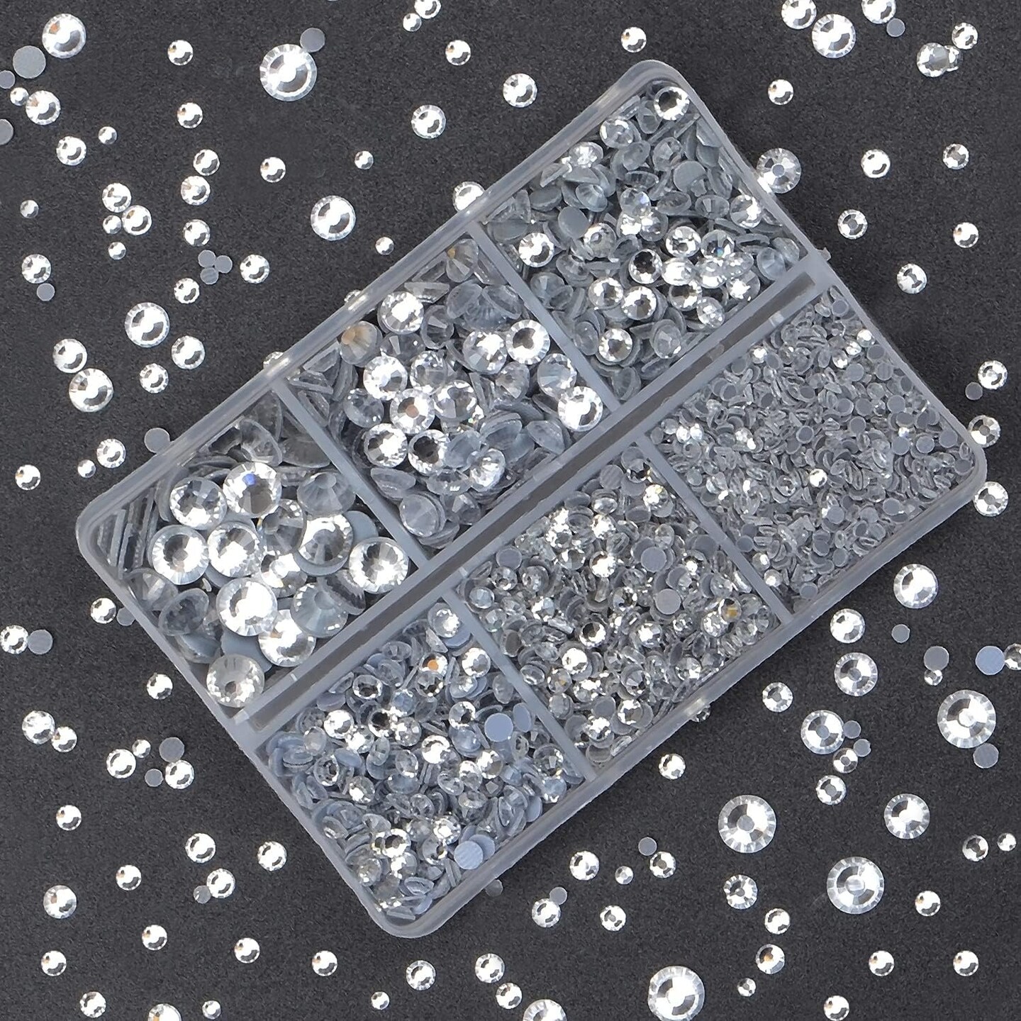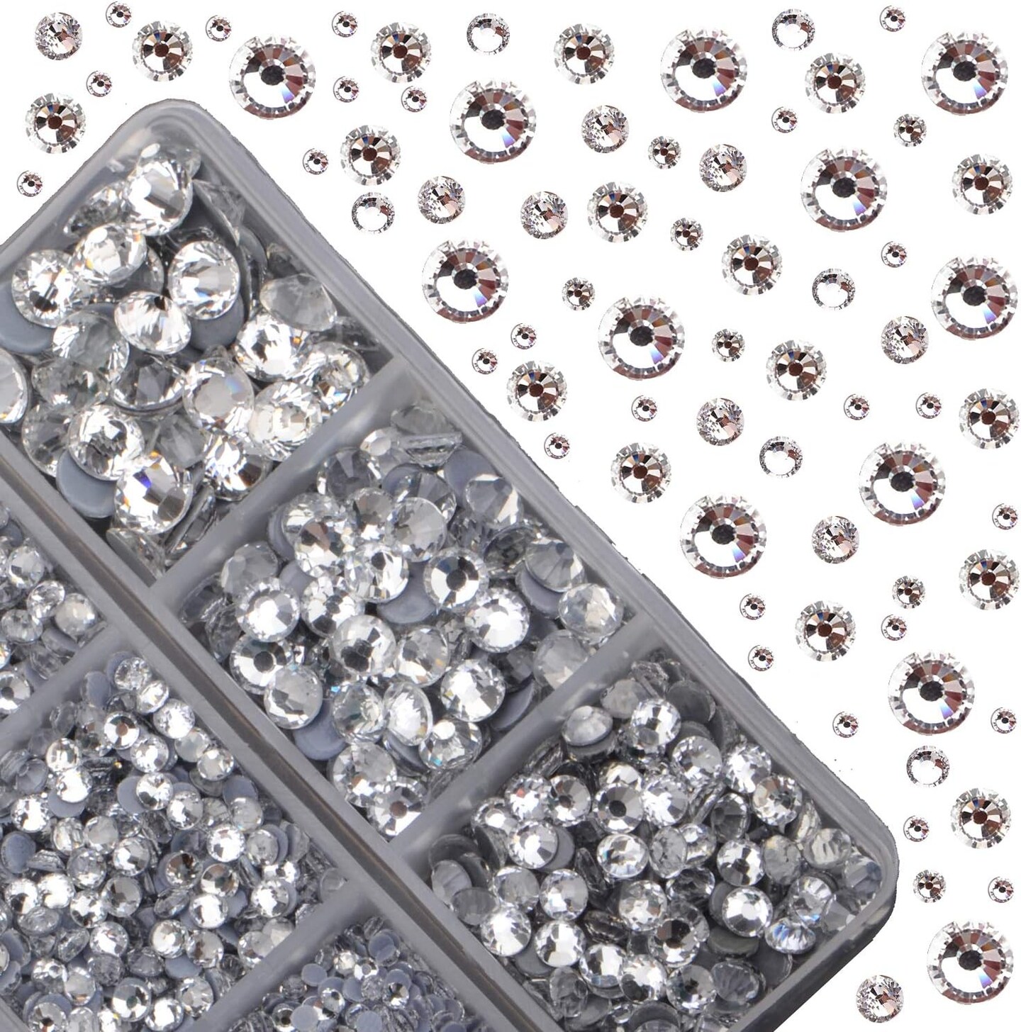 4000pcs Mixed Size Hot Fix Round Crystals Gems Glass Stones Hotfix Flat Back Rhinestones (Clear Crystal)