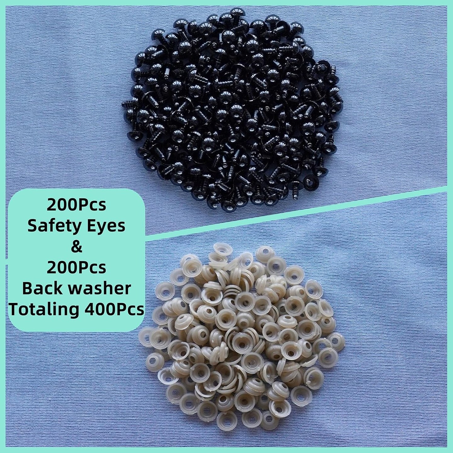 400pcs 12mm Black Safety Eyes with Washers – Plastic Crochet Eyes for Amigurumi, Stuffed Animals, Dolls & DIY Plush Craft Making (200 Eyes + 200 Washers)