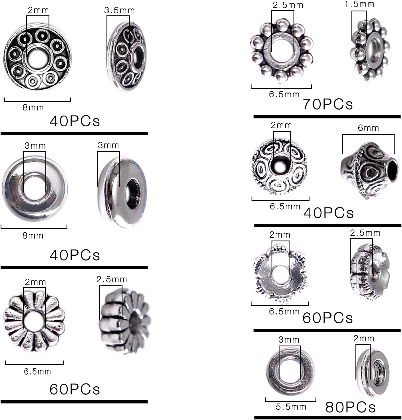 400Pcs Antique Silver Spacer Beads for Jewelry Making, Small Metal Flat Flower Beads, Bracelet, Necklace, Earring Findings & Supplies (400)