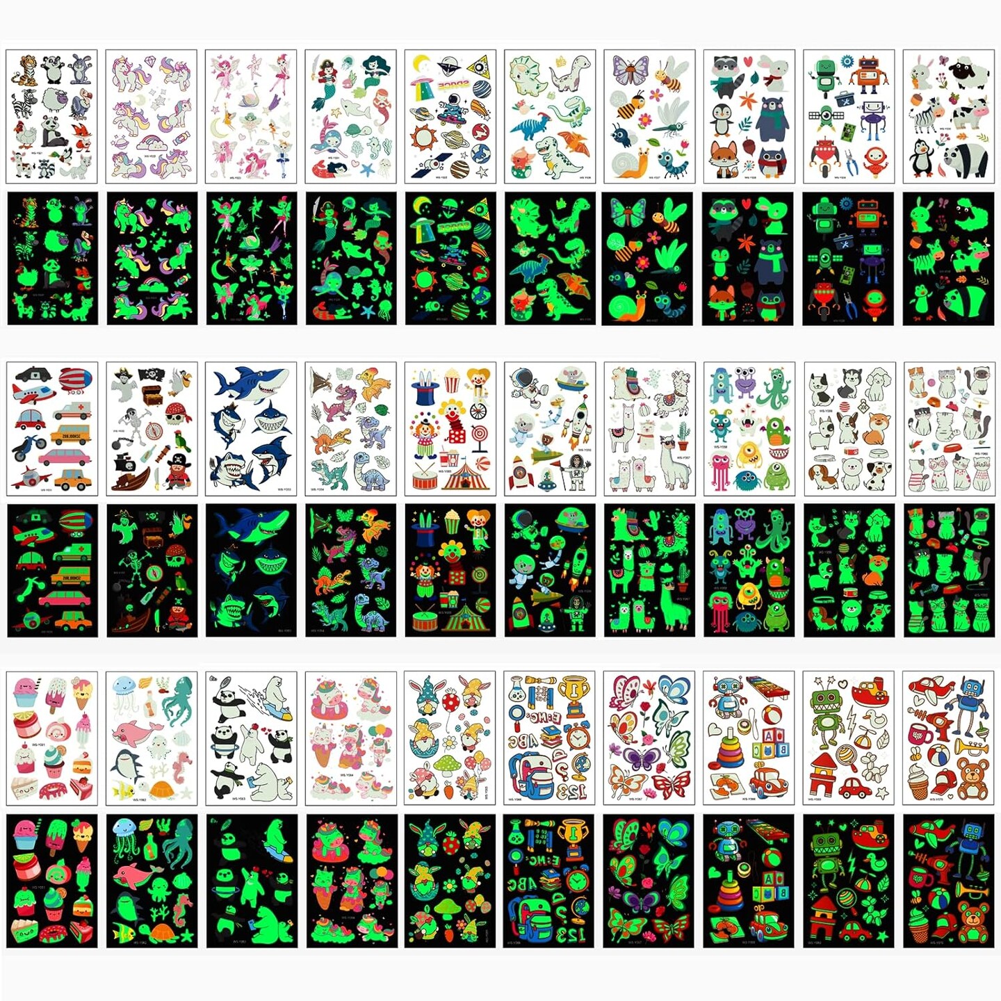 400Pcs Luminous Tattoos For Kids,Mixed Styles Temporary Tattoo Stickers,Glow In The Dark Tattoos for Boys and Girls,Mermaid Dinosaur Butterfly Fake Tattoo or more party makeup gifts 30 Sheets
