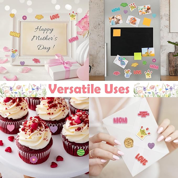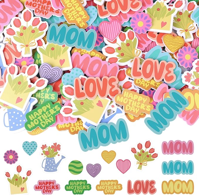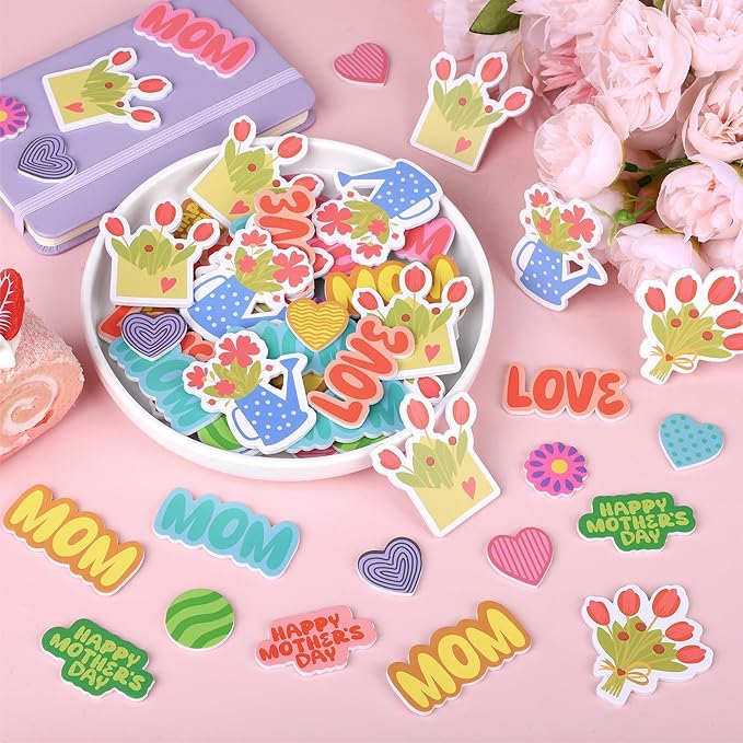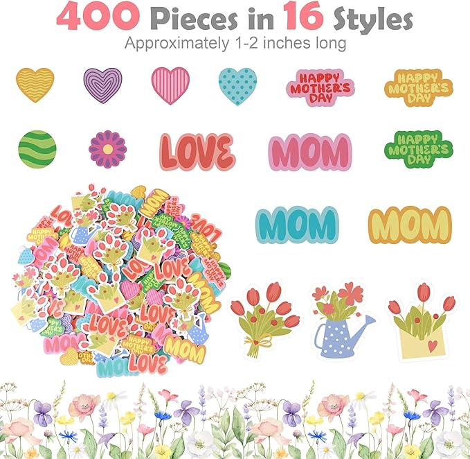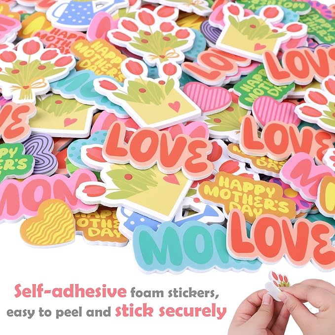 400PCS Mother’s Day Foam Stickers – Hearts, Flowers, Dots, and Mom Adhesive Stickers for DIY Crafts, Cards, Envelopes & Party Decorations