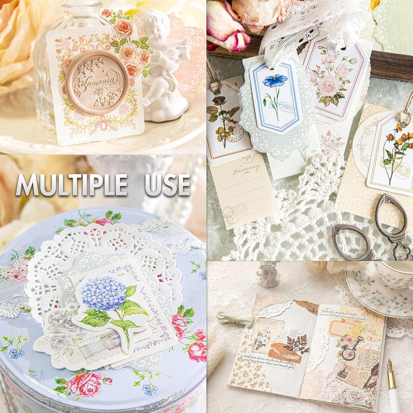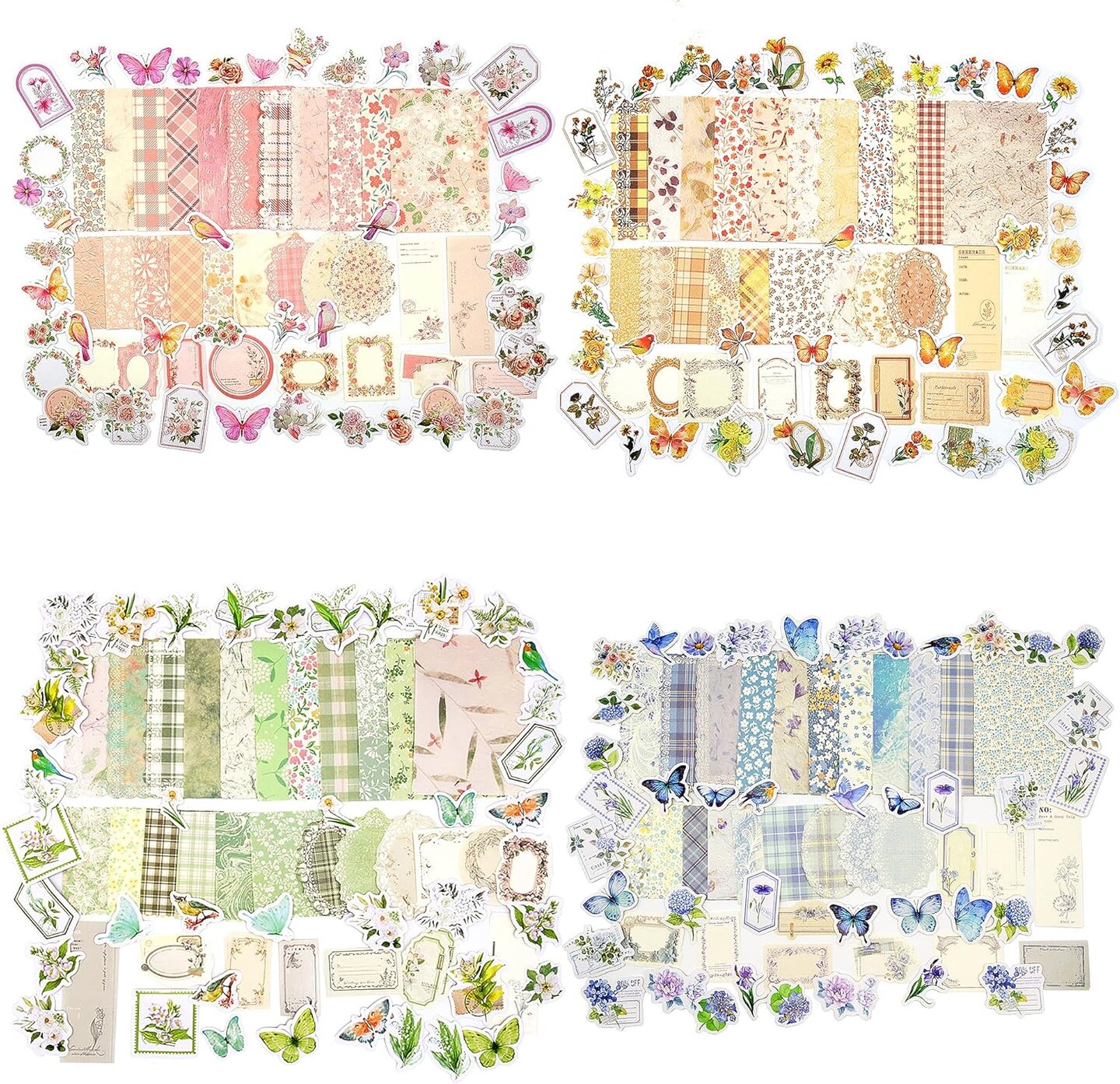 400pcs Vintage Floral Scrapbook Paper & Journaling Stickers Assorted Set (Four Season Flower) 6.3 x 4.3 x 0.04 inches