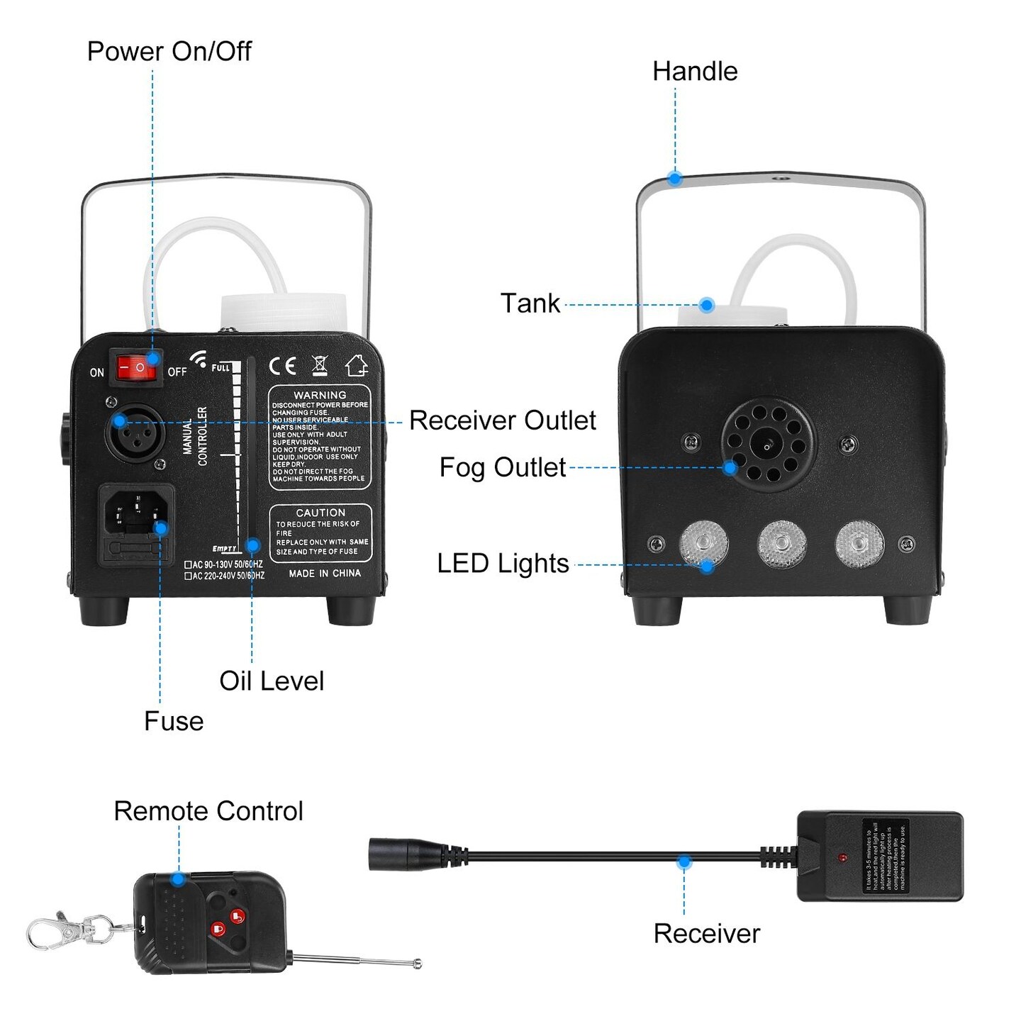 400W Fog Machine RGB LED Party Club DJ Fogger Rapid Heating Remote Control Wedding Stage Smoke Machine