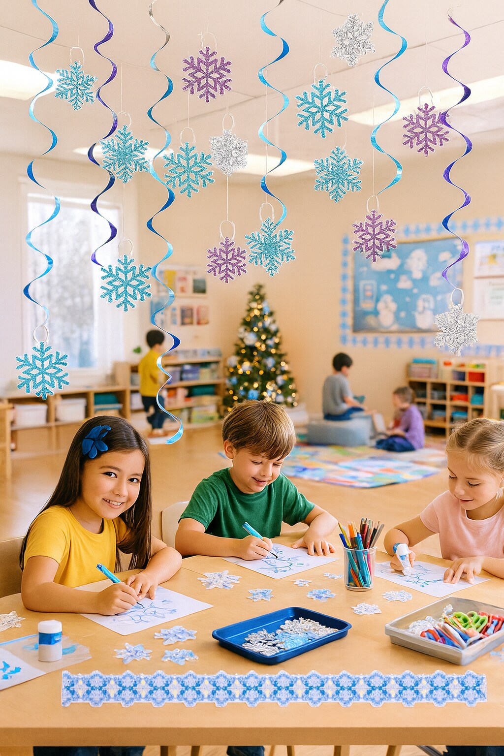 40-Pack Snowflake Hanging Swirl Decorations – Winter Classroom & Party Décor
