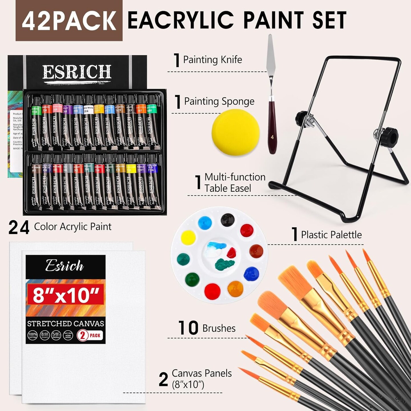 40PCS Acrylic Paint Set,Professional Painting Supplies with Acrylic,Canvas Panels,Brushes,Paint Knife,Sponge,Plastic Palette and Metal Easel for Adults,Kids and Artists