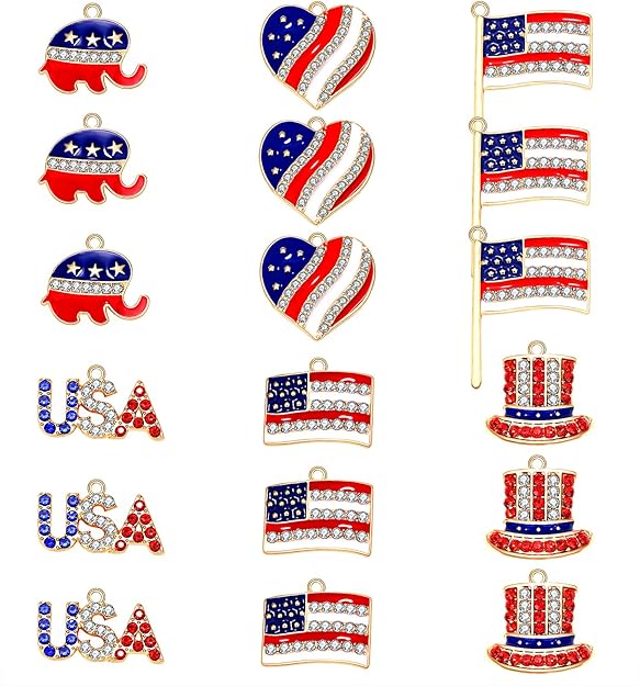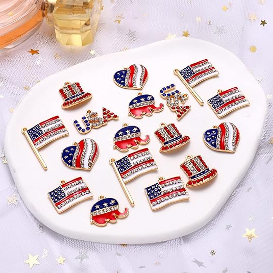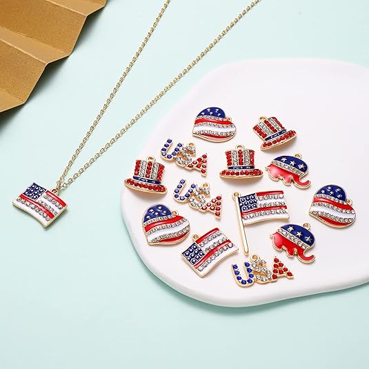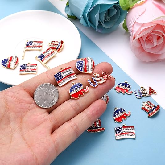 40PCS American Flag Charms 4th of July Patriotic Charms for Jewelry Making Rhinestone Enamel Heart Star Pendant Charms for DIY Necklace Bracelet Earrings Crafts