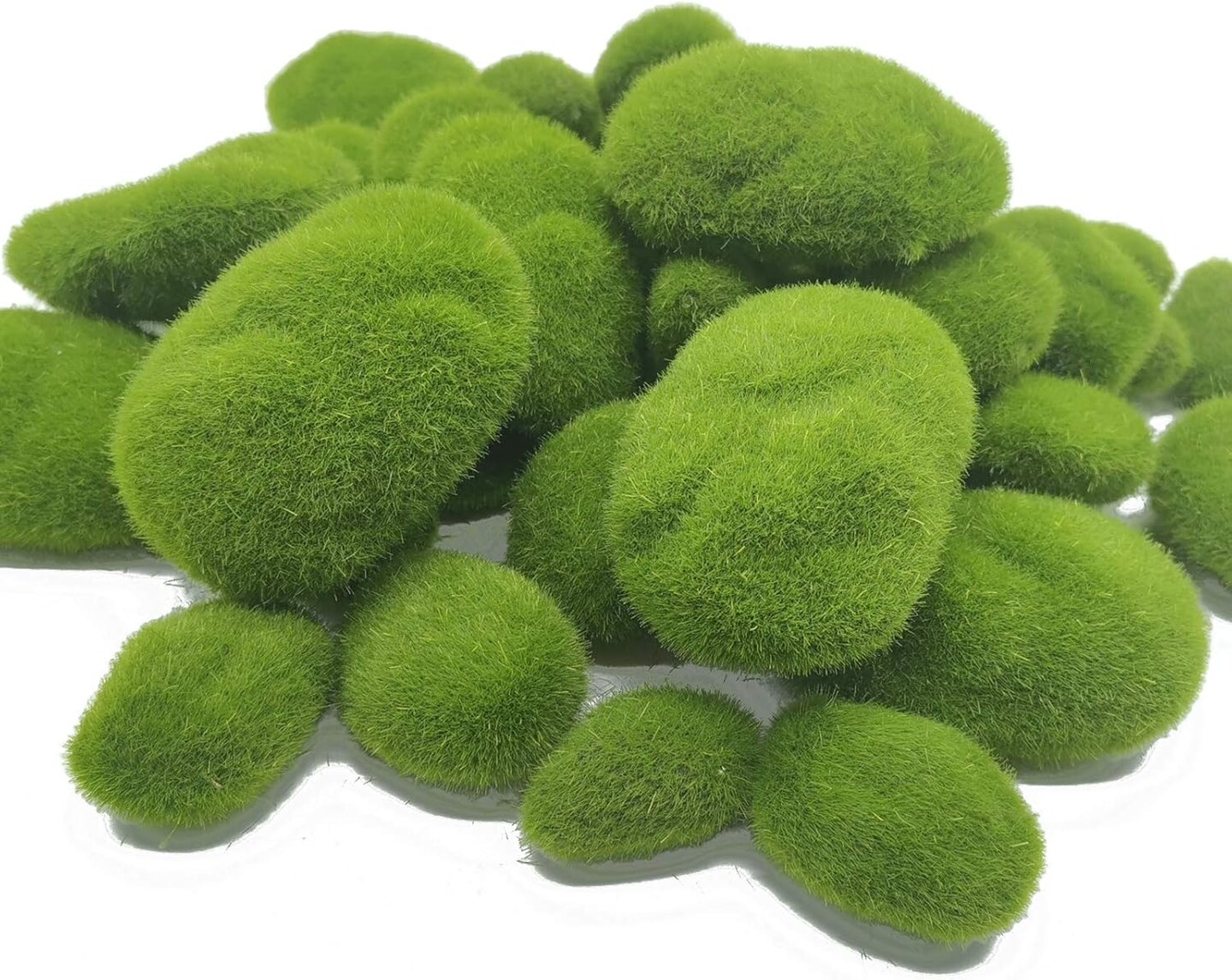 40PCS Artificial Moss Rocks (4 Sizes), Green Moss Decor for Floral Arrangements, Fairy Gardens and Crafting
