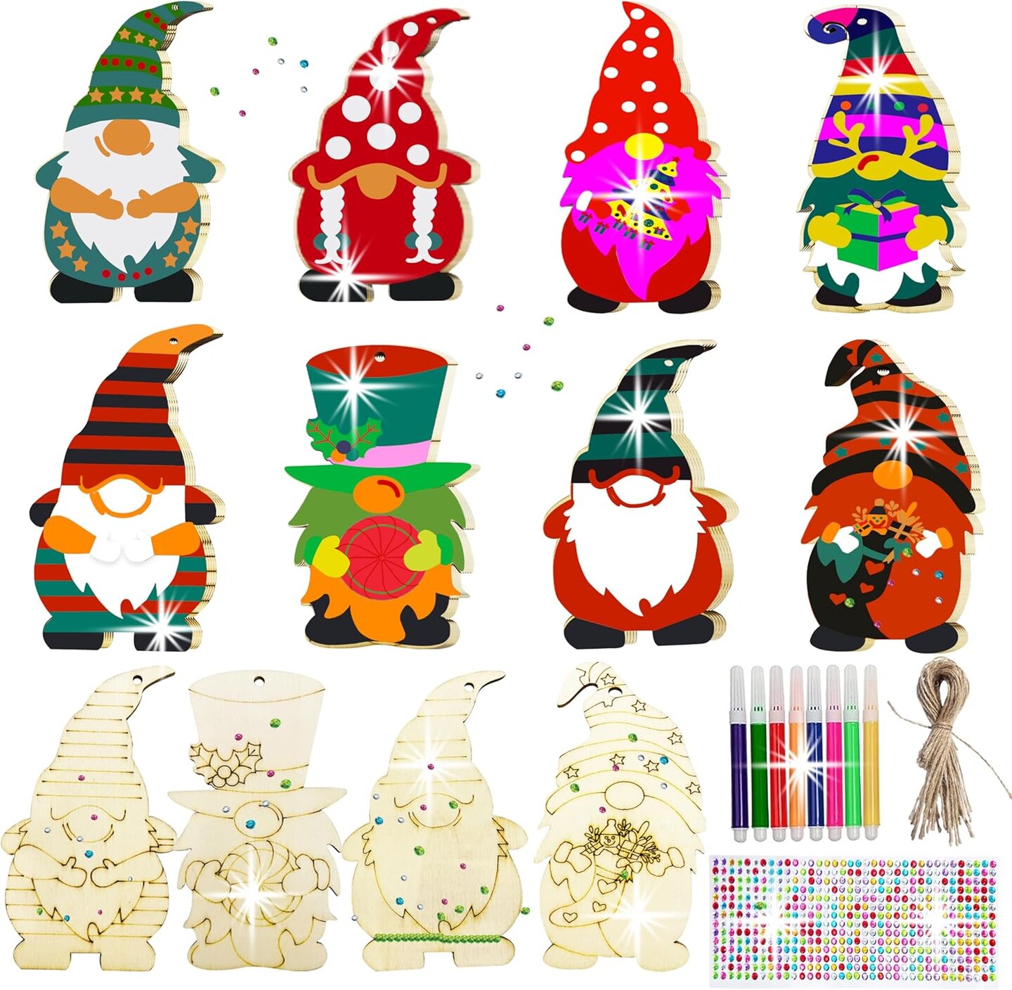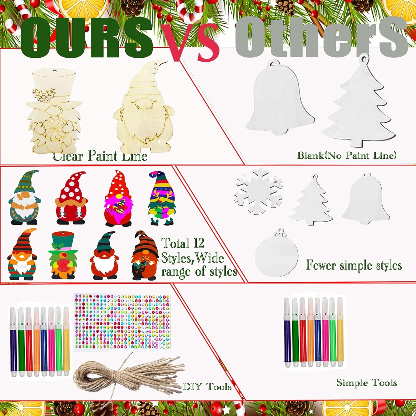 40PCS DIY Christmas Wooden Ornaments Unfinished Wood Slices to Paint with 8 Styles,Wooden Christmas Ornaments Crafts,DIY Santa Claus Christmas Tree Ornaments kit for Kids,DIY Christmas Tree Crafts