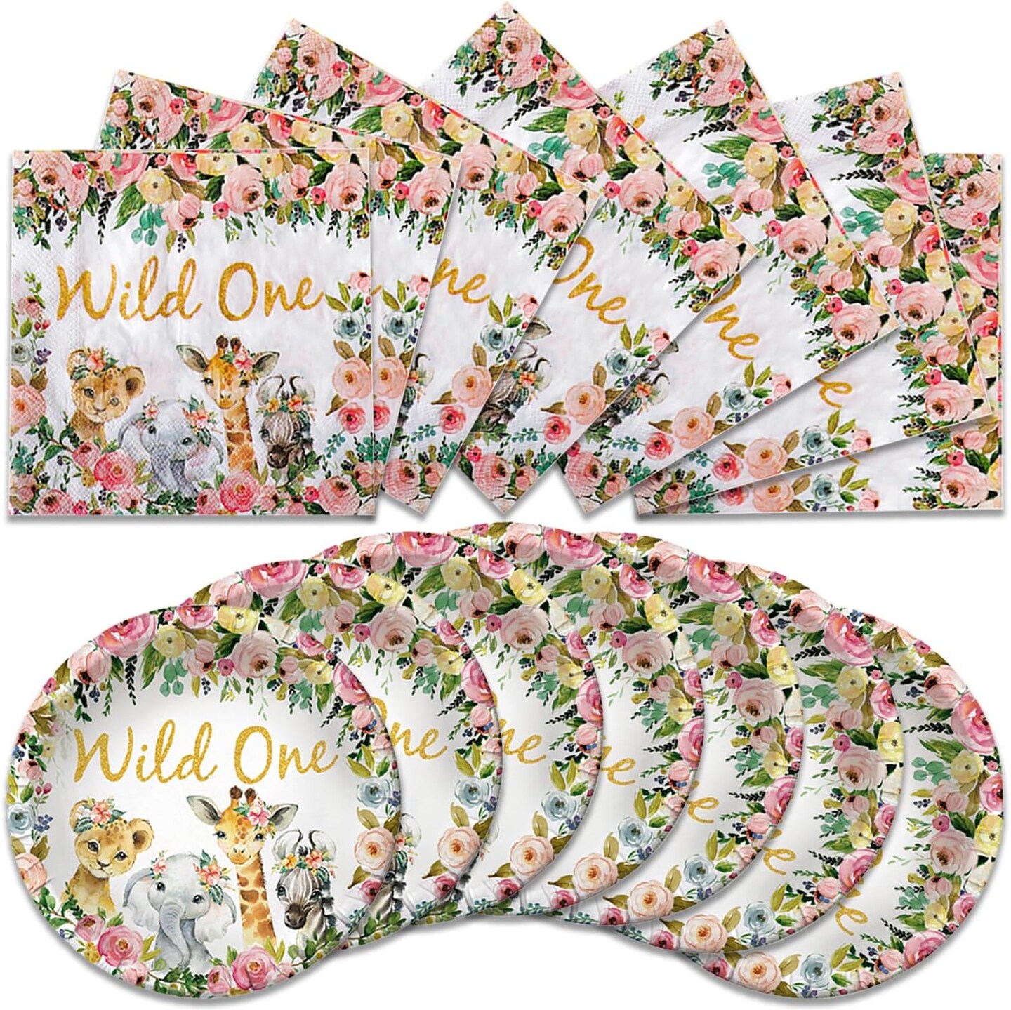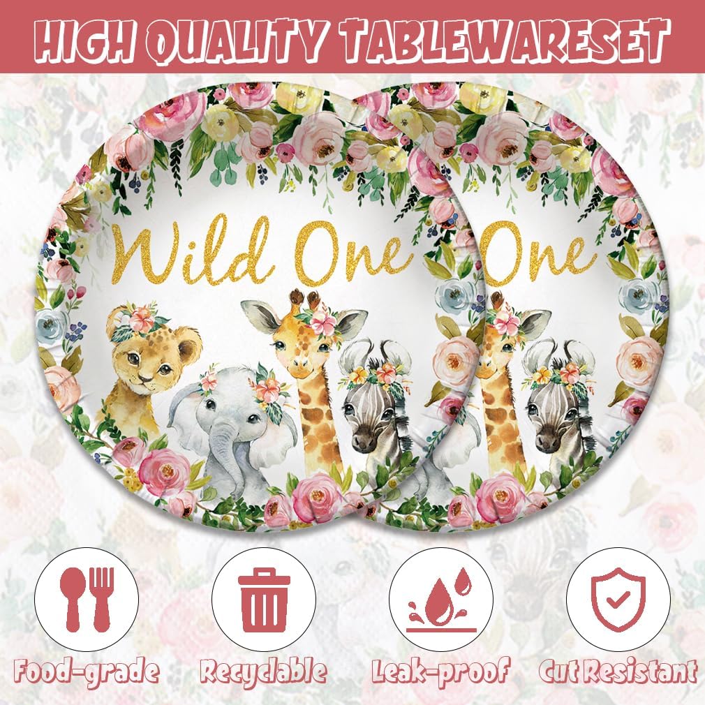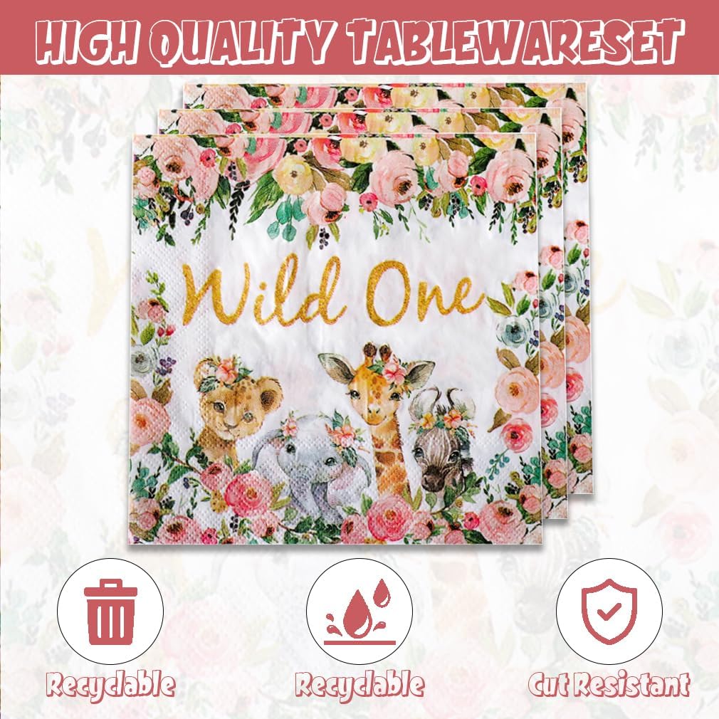 40Pcs Safari Baby Shower Party Decorations (Wild Animals Pink)