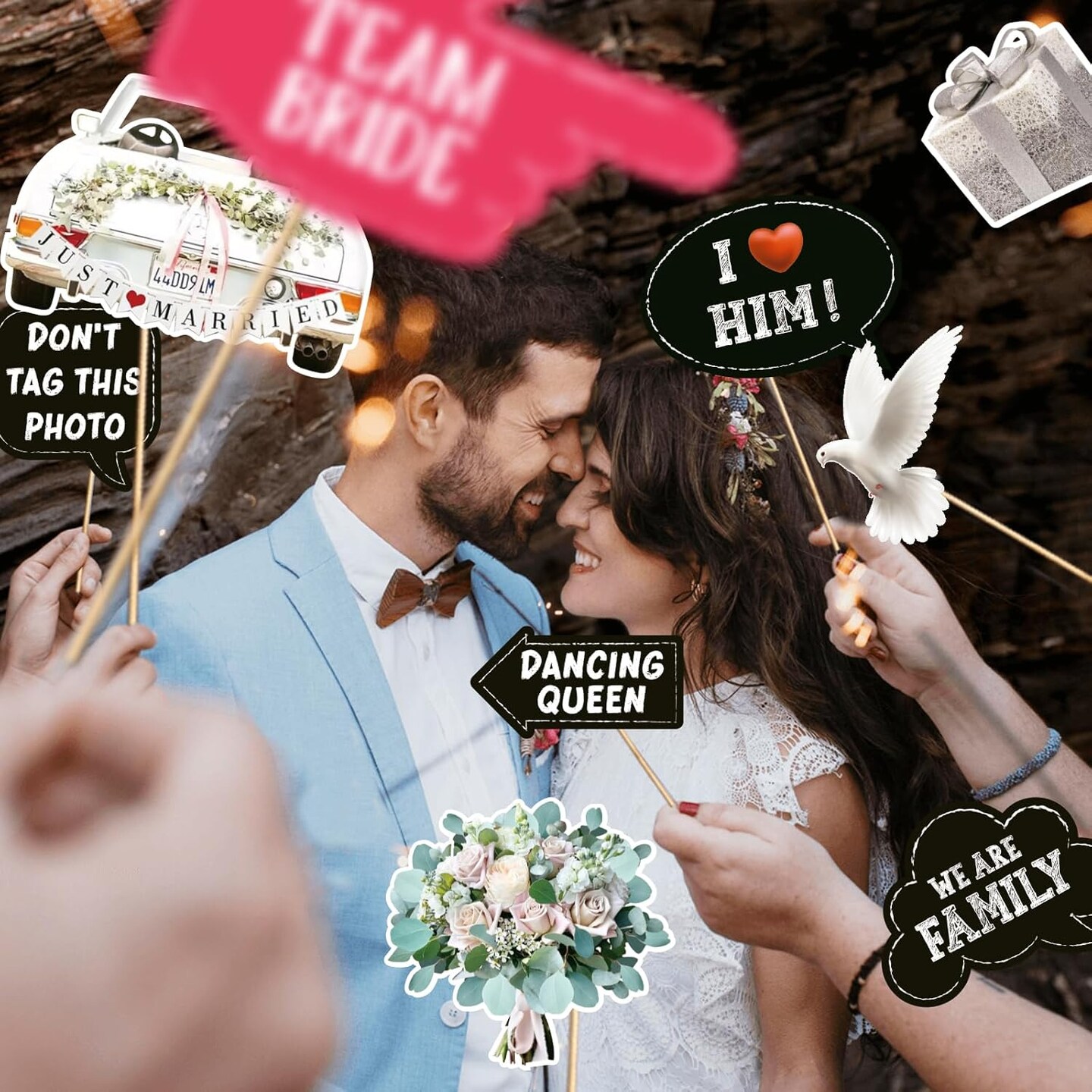 40pcs Wedding Photo Booth Props Wedding Selfie Props for Photobooth Wedding Party Supplies Weeding Shower Decorations