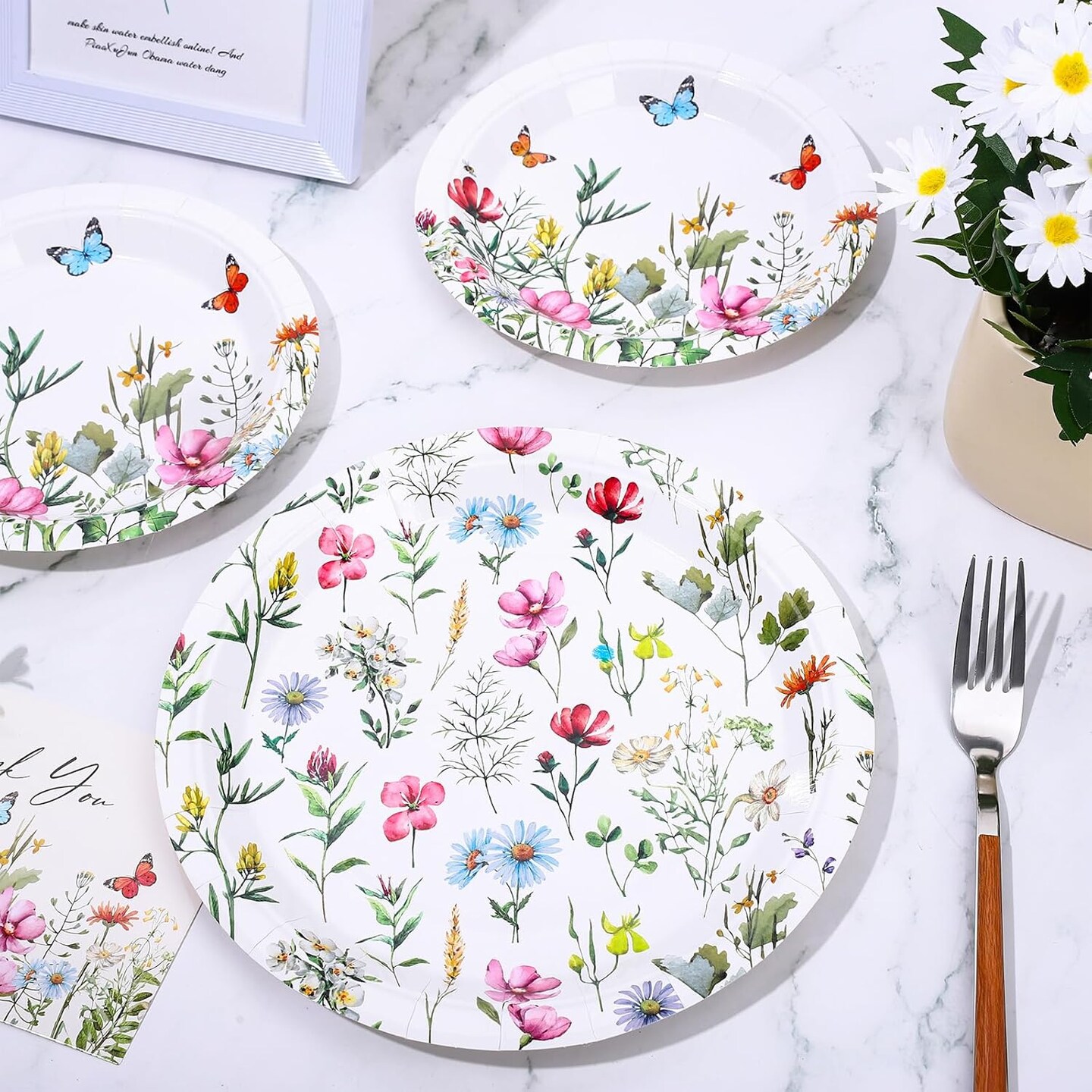 40Pcs Wildflower Paper Plates Floral Party Decoration 7 In & 9 Inch Disposable Dinner Dessert Plates for summer occasions