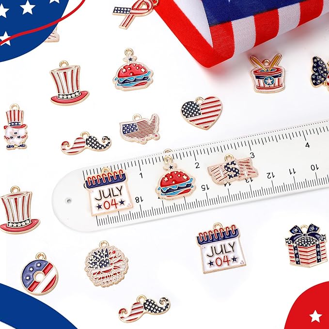 40Pcs/20 Pairs Patriotic Charms, 4th of July Enamel Charms for Jewelry Making, Red White Blue American Flag Independence Day Pendants for Bracelet Necklace Earrings Making