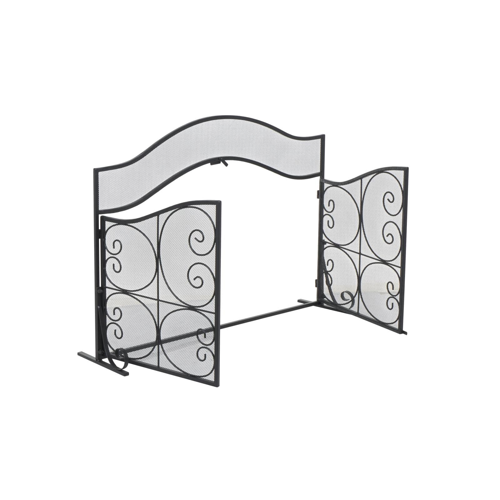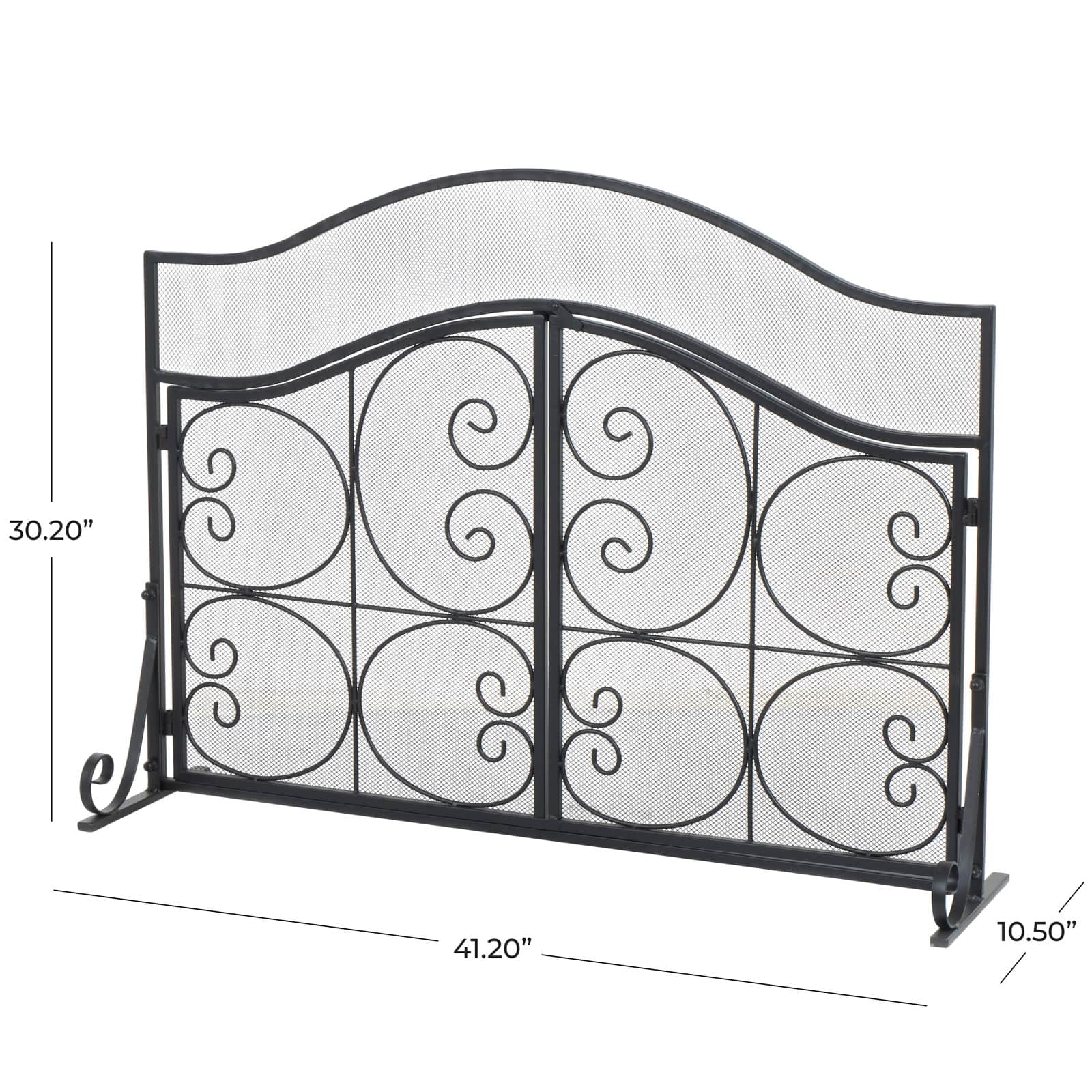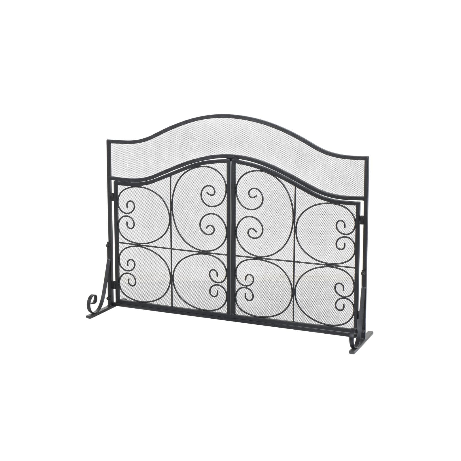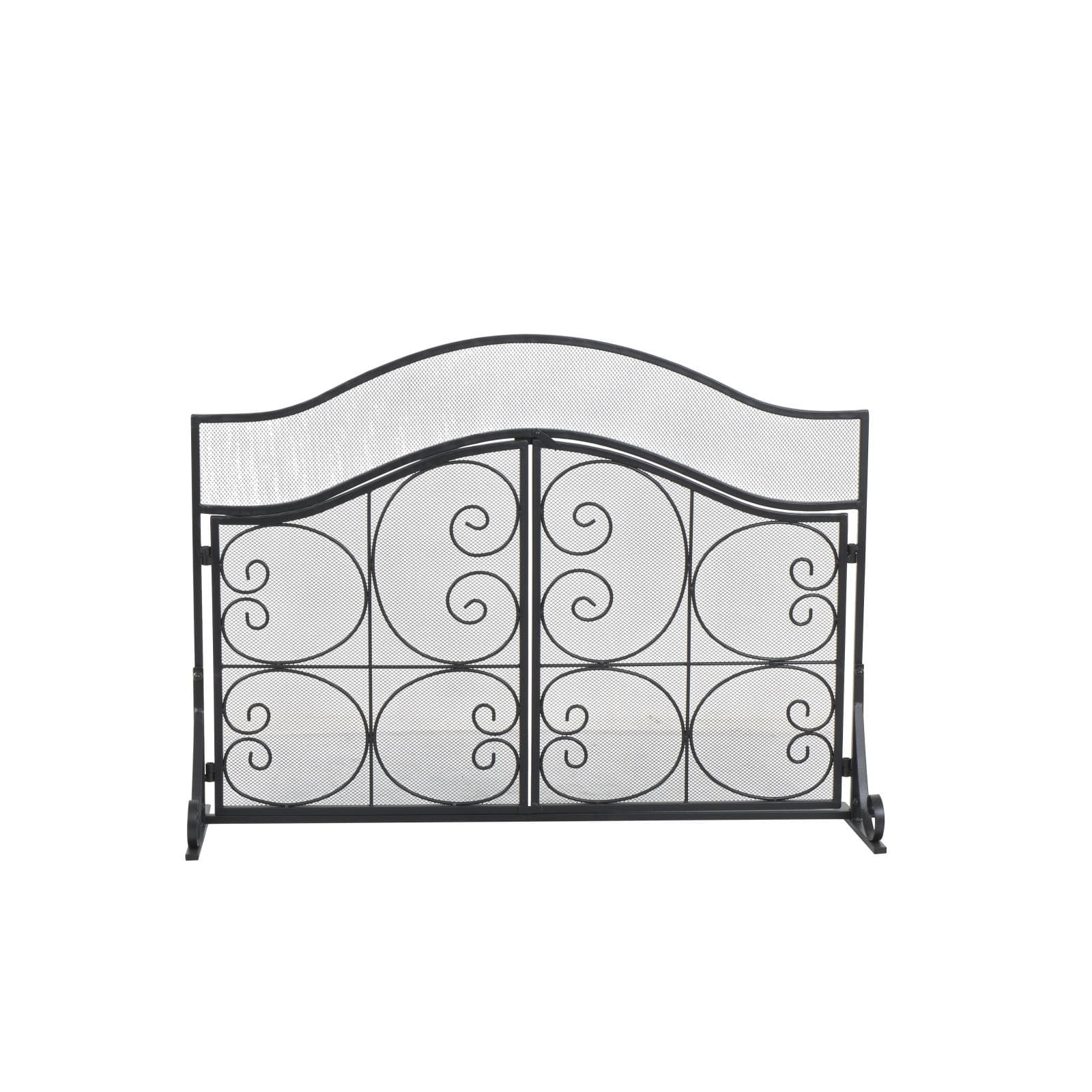41" Black Metal Scroll Arched 1-Panel 2-Door Fireplace Screen with Mesh Backing