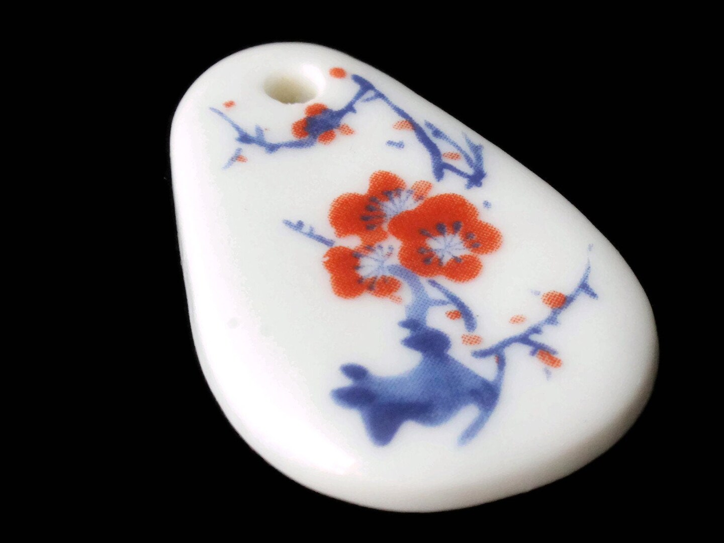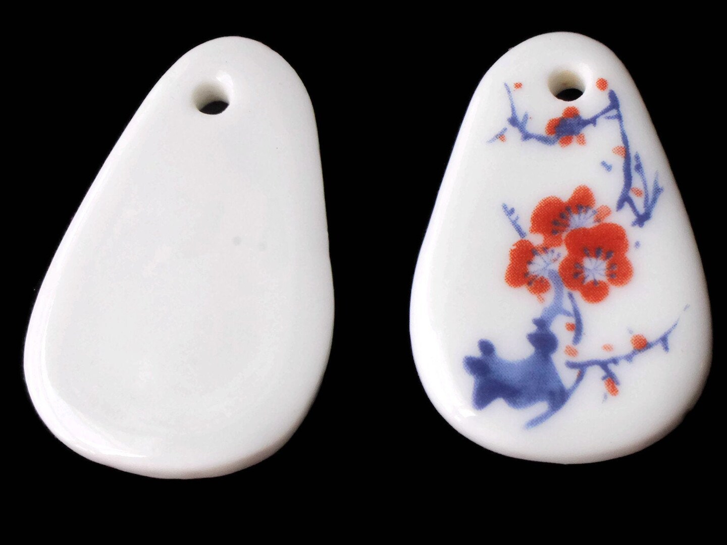 41mm White Flowered Porcelain Pendant White China Teardrop Pendant