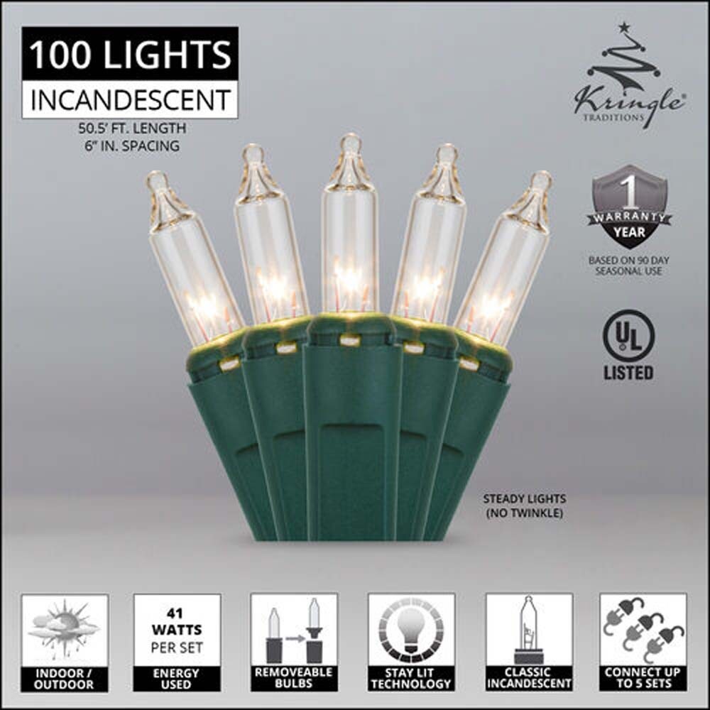 41w 100 Clear Mini Lights with Green Wire in 6-in Spacing