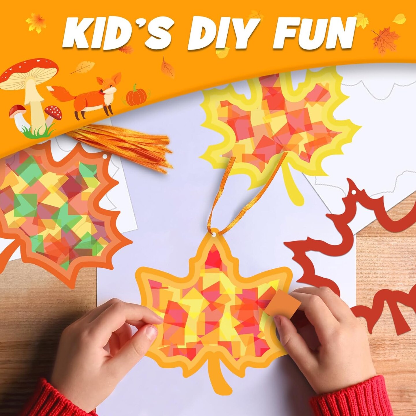 42 Packs Fall Leaf Suncatchers Crafts for Kids, Thanksgiving Leaf Tissue Art Crafts(Fall Leaf)10 x 7 x 0.35 inches