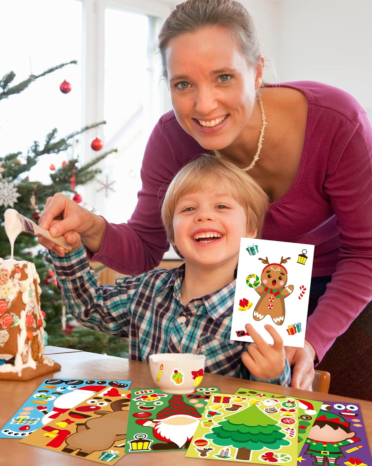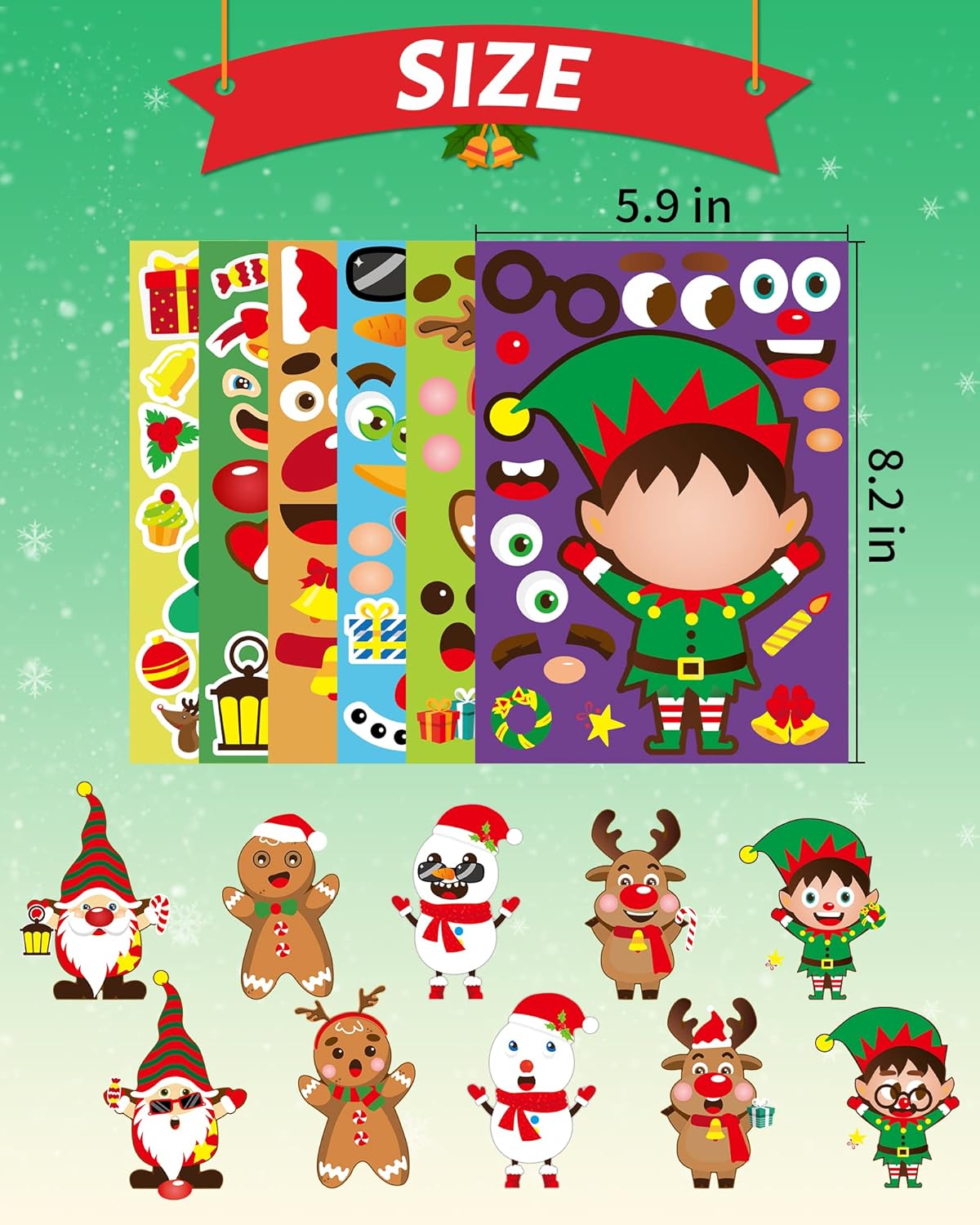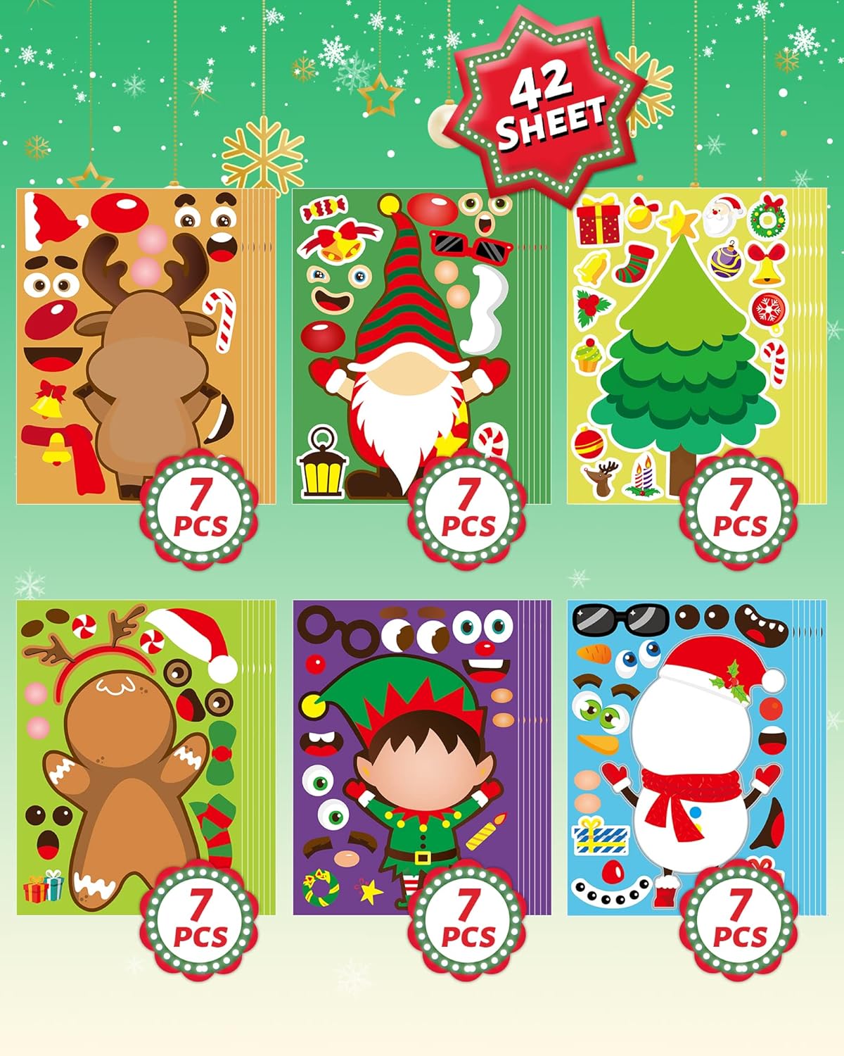 42 Sheets Christmas Party Favors Stickers, Christmas Crafts Make Your Own Sticker, Christmas Gifts for Classroom Student Stocking Stuffers Goodie Bag Christmas Activities Game Holiday Sticker for Kids
