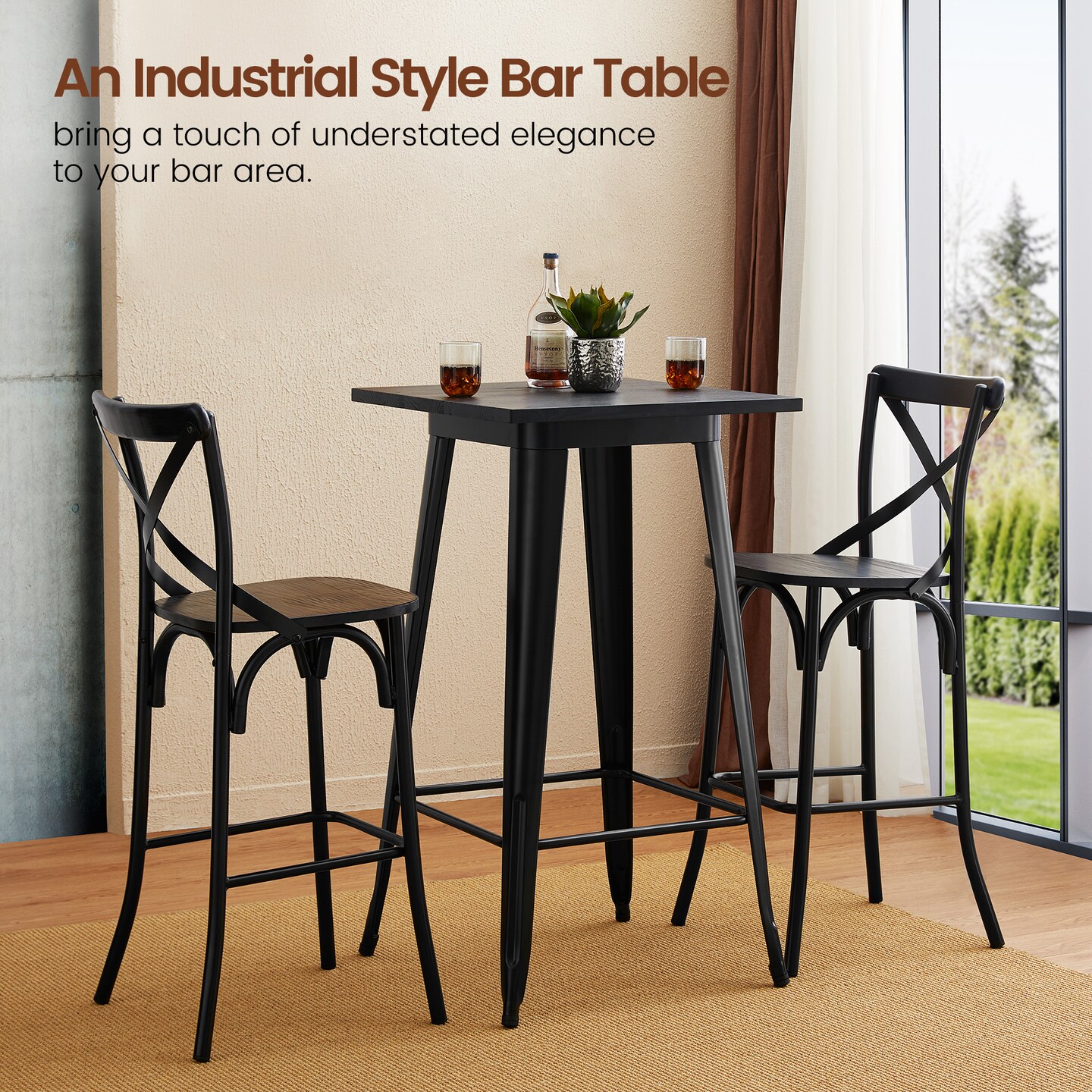 42.50"H Steel Bar Table with Square Elm Wood Top